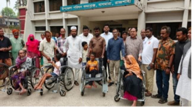 নিজেস্ব প্রতিবেদক বাগমারাঃ রাজশাহীর বাগমারার সেই প্রতিবন্ধী পরিবারের পাশে দাঁড়িয়েছেন উপজেলা নির্বাহী অফিসার। পরিবারের সদস্যদের মধ্যে হুইল চেয়ার বিতরণের মাধ্যমে সহায়তা কার্যক্রম শুরু করা হয়েছে। শুক্রবার প্রথম আলোর অনলাইনে ” স্বামী- স্ত্রীসহ ৮ সদস্যের পরিবারে ৬ জনই প্রতিবন্ধী” শিরোনামে একটি সংবাদ প্রকাশিত হয়। সংবাদটি নজরে আসে বাগমারা উপজেলা নির্বাহী কর্মকর্তা মাহবুবুল ইসলামের।