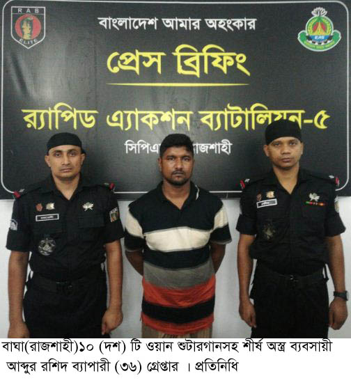 বাঘায় অস্ত্রের বড় চালানসহ ব্যবসায়ী আব্দুর রশিদ গ্রেপ্তার