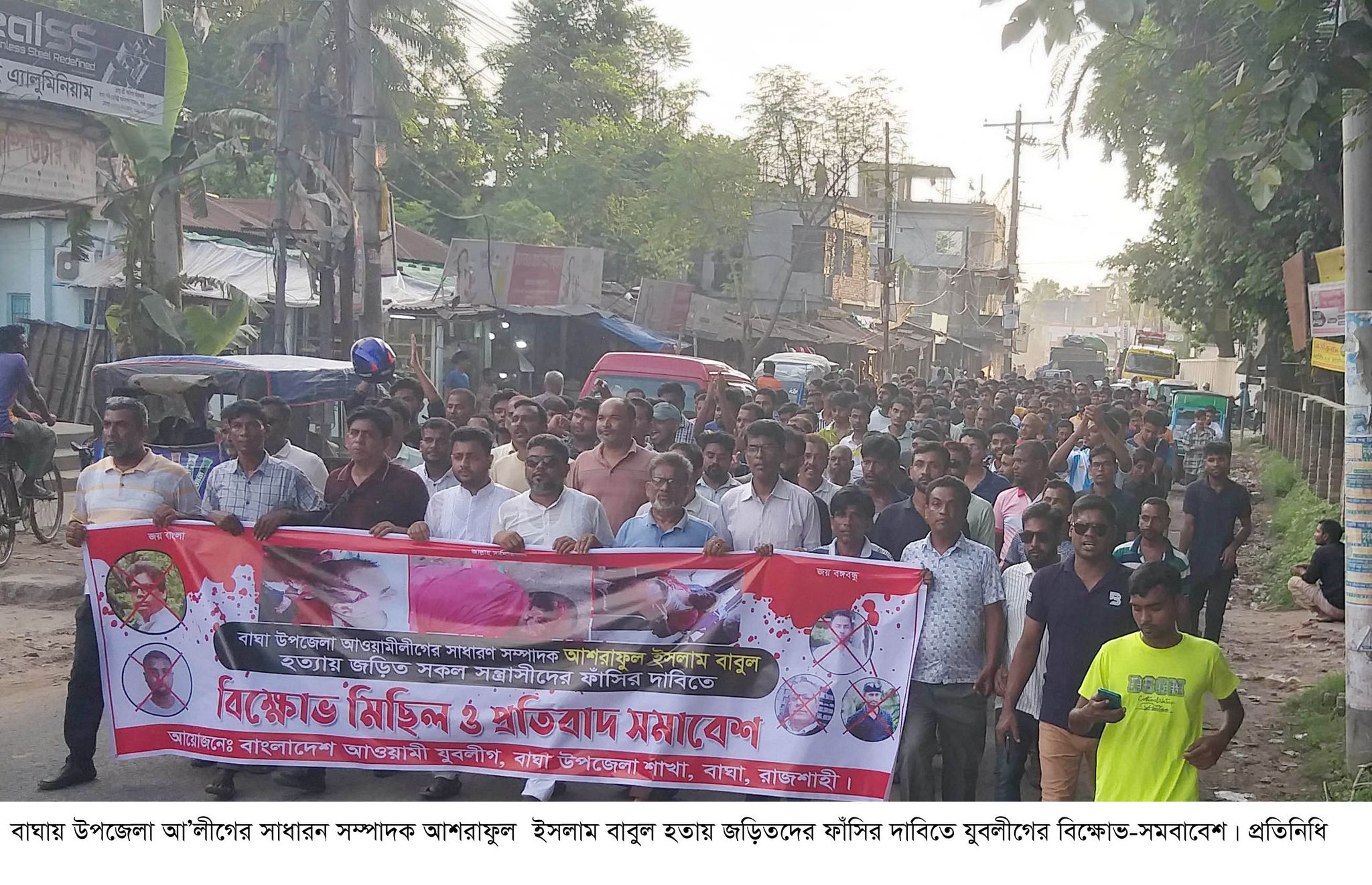 বাঘায় আ’লীগ নেতা বাবুল হত্যায় জড়িত সকল সন্ত্রাসীদের ফাঁসির দাবিতে যুবলীগের বিক্ষোভ সমাবেশ