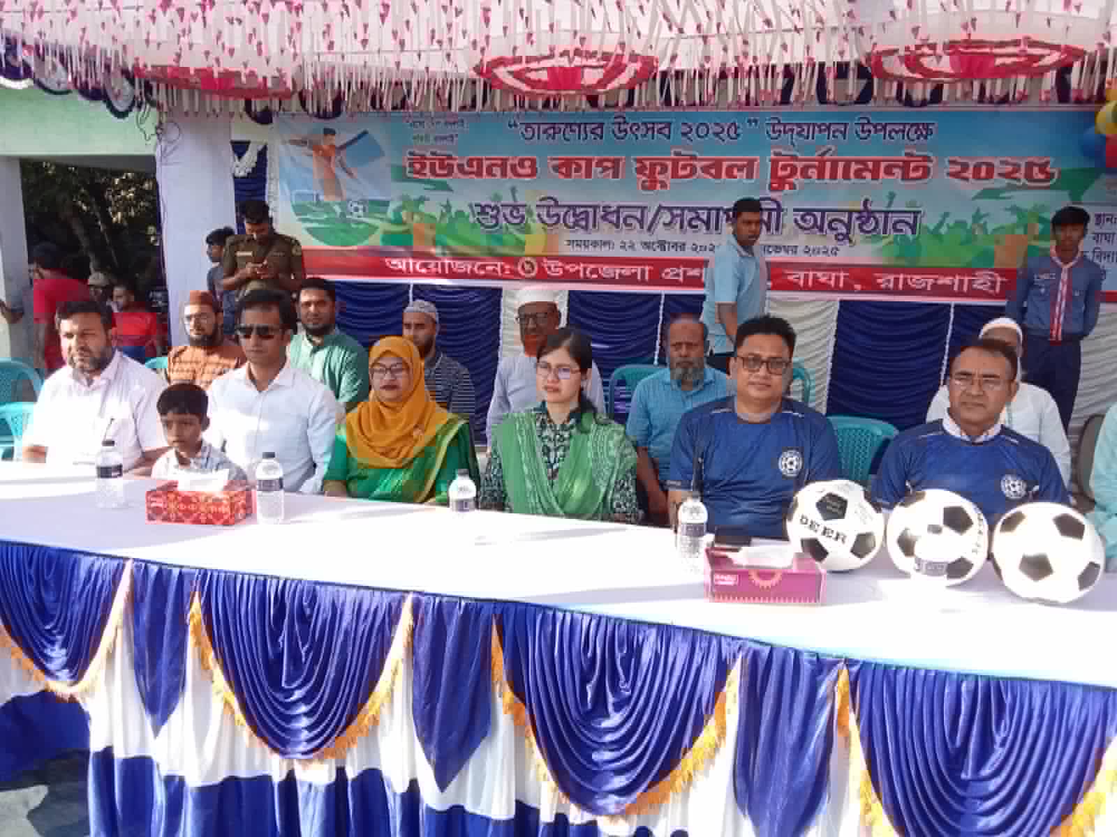 এছাড়া উপজেলার ৭ ইউনিয়ন পরিষদের ভারপ্রাপ্ত চেয়ারম্যান ও ইউনিয়ন প্রশাসকসহ গণ্যমান্য ব্যক্তিরা উপস্থিত ছিলেন। জানা যায়, উপজেলায় সাতটি ইউনিয়ন ও দুইটি পৌরসভা নিয়ে ইউএনও কাপ ফুটবল টুর্নামেন্ট অনুষ্ঠিত হচ্ছে। সকল ফুটবল খেলা বাঘা মডেল উচ্চবিদ্যালয় মাঠে অনুষ্ঠিত হবে। ২২ অক্টোবর বুধবার বিকেলে বাঘা মডেল উচ্চ বিদ্যালয় মাঠে উপজেলা প্রশাসনের আয়োজনে টুর্নামেন্টের শুভ উদ্বোধন অনুষ্ঠিত হয়। নক আউট মাধ্যামে অনুষ্ঠিত। আজ বৃহস্পতিবার গড়গড়ি ইউনিয়ন পরিষদ বনাম আড়ানী পৌর সভার মধ্যে খেলা অনুষ্ঠিত হবে।#