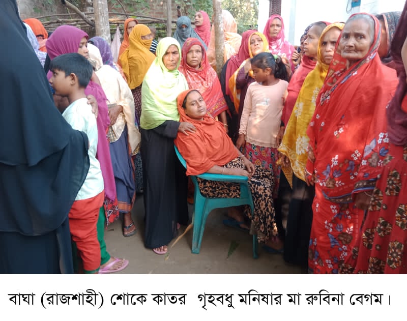জানা যায়, গত ৪ বছর আগে কাবিন (রেজিস্ট্রি) ছাড়াই একই গ্রামের আজাদ আলীর সাথে তার বিয়ে হয় মনিষার। তাদের ঘরে আড়াই বছরের এক কণ্যা রয়েছে। গৃহবধুর পিতা মুনসাদ আলী জানান, বিয়ের সময় মেয়ের বয়স কম থাকায় কাবিন ছাড়াই বিয়ে দেন। মত্যুর দেড় মাস আগে বিয়ে রেজিস্ট্রি করতে চাইলে ছেলের মামা ২ লক্ষ টাকা যৌতুক দাবি করে। তার দাবি, বিয়ের সময় ছেলের পরিবারকে ২ লক্ষ টাকা যৌতুক হিসেবে দিয়েছেন ।