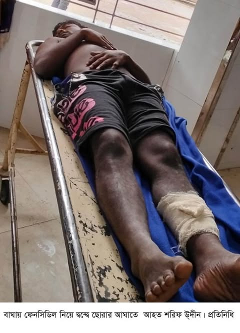 শরিফের দাবি আমদানি নিষিদ্ধ ভারতীয় ফেনসিডিল ছিনিয়ে নেওয়ার সন্দেহে কয়েকজন তার বাড়িতে গিয়ে কুপিয়ে জখম করেছে। বুধবার বিকেলে শরিফ উদ্দীন মুঠোফোনে জানান, বাঘা উপজেলার মীরগঞ্জ সীমান্তবর্তী চারঘাট উপজেলার রাওথা গ্রামের বাসিন্দা তজলু উদ্দীন (সাবেক মেম্বর) এর ছেলে ফেনসিডিল বহন করে নিয়ে যাচ্ছিল। কে বা কারা সেগুলো ছিনিয়ে নেয়। বিষয়টি নিয়ে তাকে সন্দেহ করে সাবেক মেম্বর তজলু উদ্দীনের নের্তৃত্বে তার ছেলে মালেক,ভাতিজা খালিদ ও আমিরুলসহ কয়েকজন তার বাড়িতে গিয়ে কুপিয়ে জখম করে। খালিদ এর ধারালো ছোরার আঘাতে বাম পায়ের হাটুর নীচে লেগে গুরুতর জখম হন বলে দাবি তার। তাকে উদ্ধার করে প্রথমে বাঘা উপজেলা স্বাস্থ্য কমপ্লেক্সে নেওয়া হয়। পরে রাজশাহী মেডিকেল কলেজ হাসপাতালে ভর্তি করা হয়েছে।