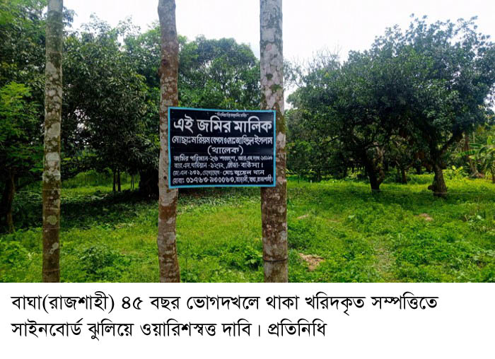 বিশেষ প্রতিনিধি: ৪৫ বছর আগে খরিদমূলে সম্পত্তির মালিক উপজেলার বাউসা ইউনিয়নের বাউসা পূর্বপাড়া গ্রামের বাসিন্দা আসলাম হোসেন ও তার পিতা আমির উদ্দীন(মৃত)। ভোগদখলে থাকা সেই সম্পত্তি জবরদখল করে জমির গাছপালা-ফসলাদি কেটে বিক্রিসহ প্রাণনাশের হুমকি দেওয়ার অভিযোগ করেছেন ভূক্তভুগি আসলাম হোসেন। জবরদখল করা জমিতে সাইন বোর্ড টানিয়ে দেওয়াও হয়েছে। রোববার (১৫ জুন’২৫) সকাল সাড়ে ১১ টায় বাঘা প্রেসক্লাব কার্যালয়ে সংবাদ সম্মেলনে ইউনিয়ন বিএনপির এক নেতার বিরুদ্ধে এসব অভিযোগ করেন আসলাম হোসেন।