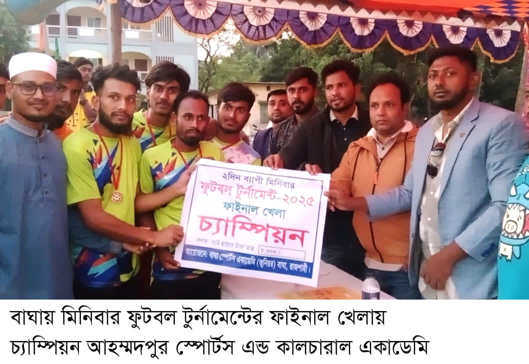 বাঘায় মিনিবার ফুটবল টুর্নামেন্টের ফাইনাল খেলায় চ্যাম্পিয়ন আহম্মদপুর স্পোর্টস এন্ড কালচারাল একাডেমি