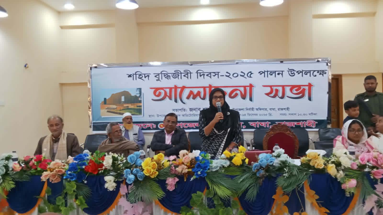 বিশেষ প্রতিনিধিঃ ১৯৭১ সালের এই দিনে পাকিস্তানি হানাদার বাহিনী ও তাদের এ দেশীয় দোসর রাজাকার, আল-বদর ও আল-শামসরা বাঙালি জাতিকে মেধাশূন্য করার হীন উদ্দেশ্যে দেশের শ্রেষ্ঠ সন্তানদের নির্মমভাবে হত্যা করেছিল। বিজয়ের মাত্র দুদিন আগে সংঘটিত এই নারকীয় হত্যাকাণ্ড জাতির ইতিহাসে এক গভীর বেদনাবিধুর অধ্যায়। রোববার(১৪-১২-২০২৫) শহিদ বুদ্ধিজীবী দিবস পালন উপলক্ষে রাজশাহীর বাঘা উপজেলা প্রশাসনের আয়োজনে সকাল ১০টায় উপজেলা শহীদ মিনার চত্বরে শহিদ স্মৃতি স্তম্ভে পুস্পস্তবক অর্পণ করে শ্রদ্ধা নিবেদন করা হয়।