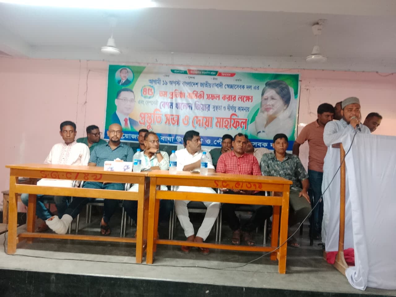 বিশেষ প্রতিনিধি: বাঘায় বাংলাদেশ জাতীয়তাবাদী স্বেচ্চাসেবক দল- উপজেলা ও পৌর শাখার যৌথ আয়োজনে আলোচনা সভা ও দোয়া মাহফিল অনুষ্ঠিত হয়েছে। বিএনপির চেয়ারপার্সন ও সাবেক প্রধানমন্ত্রী বেগম খালেদা জিয়ার জন্ম দিন এবং ১৯ আগষ্ট স্বেচ্চাসেবক দলের ৪৫ তম প্রতিষ্ঠা বার্ষিকী উপলক্ষে শনিবার(১৬-০৮-২০২৫) বিকেল ৫টায় শাহদৌলা সরকারি কলেজের হল রুমে এর আয়োজন করা হয়।