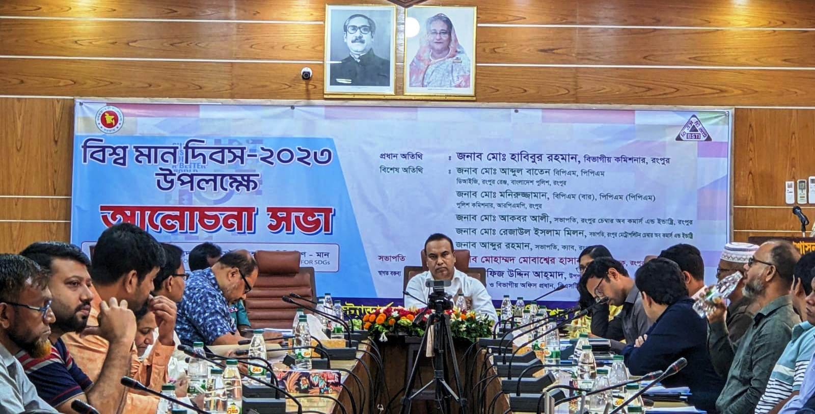 রংপুরে বিএসটিআই বিভাগীয় কার্যালয়, রংপুর এর উদ্যোগে পালিত হয়েছে বিশ্ব মান দিবস। এবারের বিশ্ব মান দিবসের প্রতিপাদ্য বিষয় হলো ‘ঝযধৎবফ ঠরংরড়হ ভড়ৎ ধ ইবঃঃবৎ ডড়ৎষফ - ঝঃধহফধৎফং ভড়ৎ ঝউএং’ অর্থাৎ ‘সমন্বিত উদ্যোগে টেকসই উন্নত বিশ্ব বিনির্মাণে - মান’। দিবসটি উপলক্ষ্যে ১৪ অক্টোবর ২০২৩ খ্রিঃ, সকাল ১০.৩০টায় রংপুর জেলা প্রশাসকের কার্যালয়ের সম্মেলন কক্ষে এক আলোচনা সভা অনুষ্ঠিত হয়।