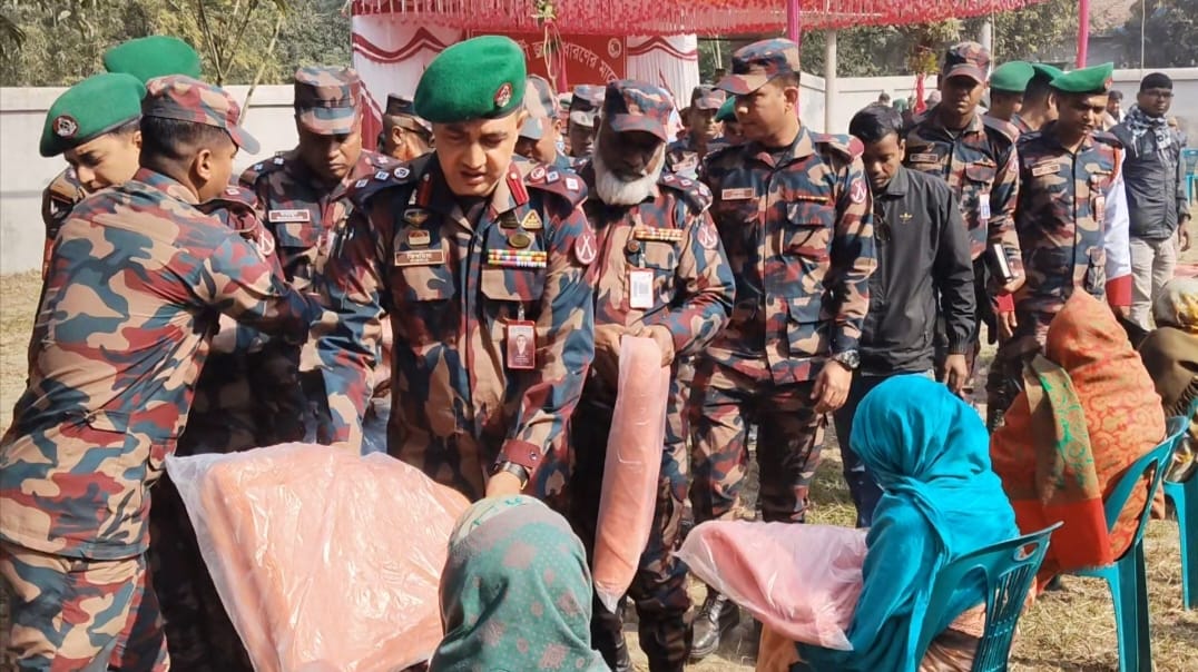 বিজিবির উদ্যোগে শিবগঞ্জ সীমান্তের অসহায়দের মাঝে শীতবস্ত্র বিতরণ