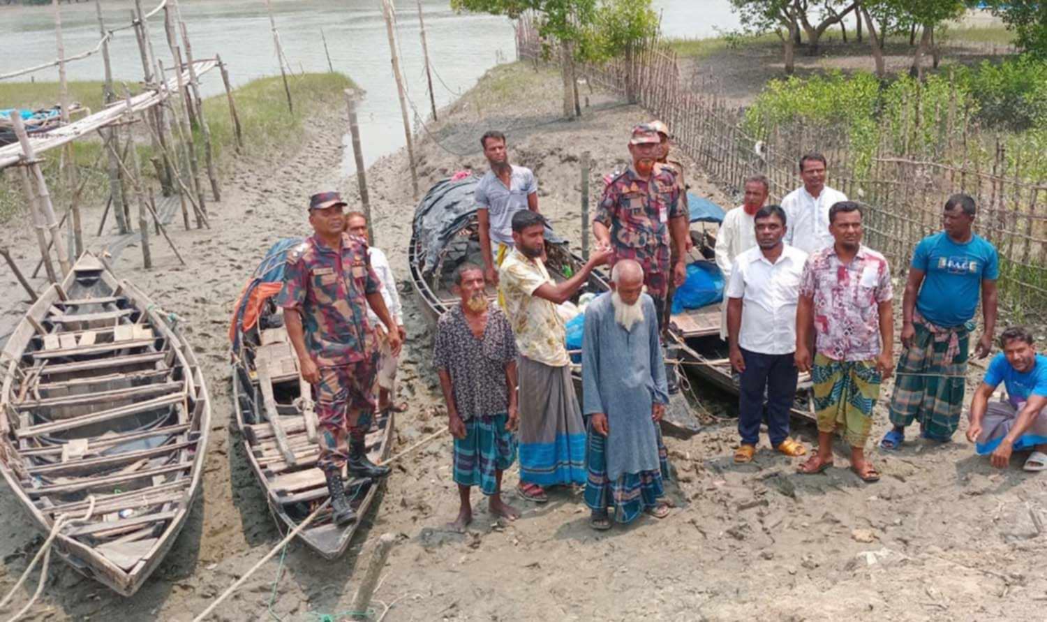 বিজিবি- বিএসএফ এর পতাকা বৈঠকে বাংলাদেশী জেলেরা ফেরৎ পেল ০৩ টি নৌকা