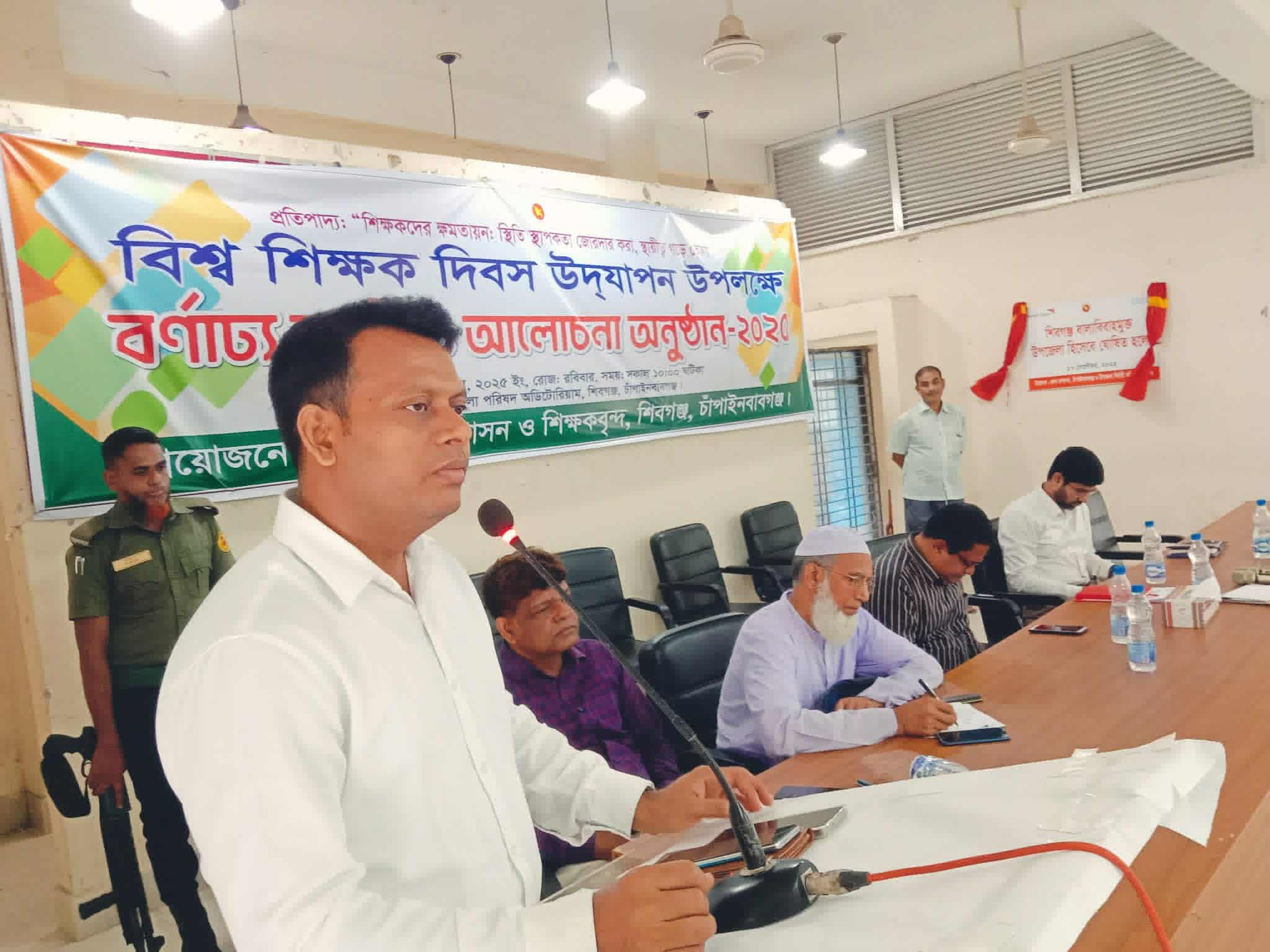 মোঃ আব্দুল বাতেনঃ “শিক্ষকদের ক্ষমতায়ন: স্থিতি স্থাপকতা জোরদার করা, স্থায়ীত্ব গড়ে তোলা” — এই প্রতিপাদ্যকে সামনে রেখে শিবগঞ্জে আজপাঁচই অক্টোবর রবিবার সকালে বর্ণাঢ্য র্যালি ও আলোচনা সভার মধ্য দিয়ে উদযাপিত হয়েছে বিশ্ব শিক্ষক দিবস-২০২৫। উপজেলা প্রশাসন ও শিক্ষকবৃন্দ, শিবগঞ্জ, চাঁপাইনবাবগঞ্জের আয়োজনে সকাল ১০টায় উপজেলা পরিষদ অডিটোরিয়াম প্রাঙ্গণ থেকে এক র্যালি বের হয়ে পৌর এলাকার প্রধান প্রধান সড়ক প্রদক্ষিণ করে। পরে উপজেলা পরিষদ অডিটোরিয়ামে অনুষ্ঠিত হয় আলোচনা সভা।