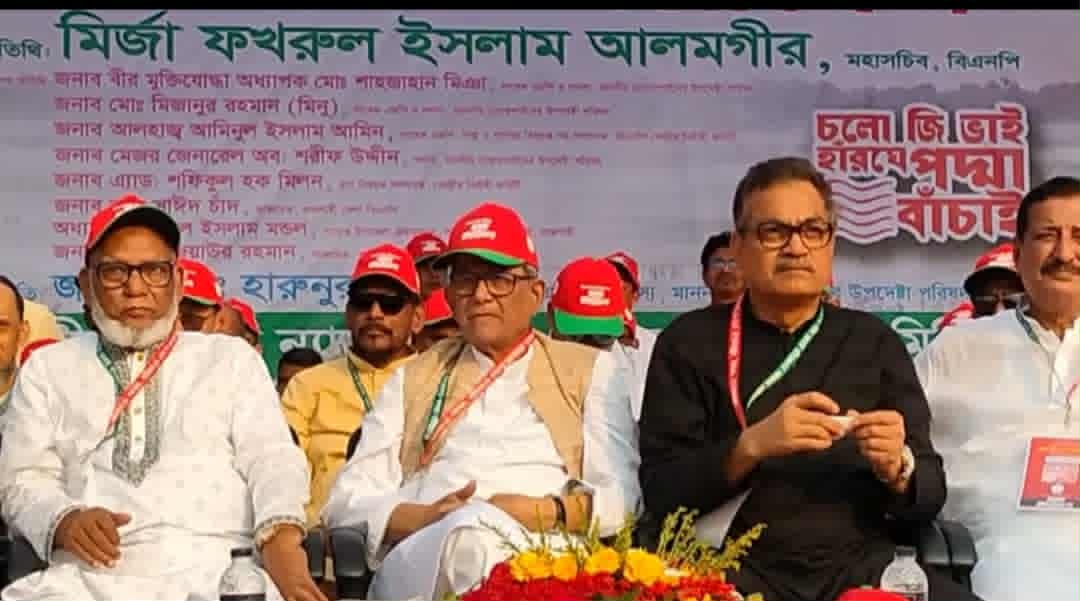 বক্তব্য বলেন, ৪৫ চাঁপাইনবাবগঞ্জ-৩ আসনের ত্রয়োদশ জাতীয় সংসদ নির্বাচনে বিএনপি দলীয় মনোনীত সাবেক এমপি প্রার্থী হারুন অর রশিদ। তিনি বলেন, “পদ্মা নদী একটি নদী নয়, এটি আমাদের জীবন রেখা। এই নদীর পানি বন্ধ হয়ে গেলে উত্তরবঙ্গের কৃষি, অর্থনীতি ও পরিবেশ ধ্বংসের মুখে পড়বে। তাই পদ্মার ন্যায্য পানি বণ্টনের দাবিতে সবাইকে ঐক্যবদ্ধ হতে হবে। জনগণের অধিকার রক্ষায় আমরা মাঠে আছি, থাকবো।” বক্তব্য বলেন ৪৩ চাঁপাইনবাবগঞ্জ-১ আসনের ত্রয়োদশ জাতীয় সংসদ নির্বাচনে বিএনপি'র মনোনীত সাবেক এমপি প্রার্থী বীর মুক্তিযোদ্ধা অধ্যাপক শাহজাহান মিঞা। তিনি বলেন, “পদ্মা আমাদের মায়ের মতো। এই নদী বাঁচলে কৃষক বাঁচবে, দেশ বাঁচবে। একতরফা পানি বণ্টন এবং সরকারের উদাসীন নীতির কারণে পদ্মা আজ মরণাপন্ন অবস্থায়। আমাদের এই আন্দোলন শান্তিপূর্ণ কিন্তু দৃঢ়—ন্যায্য অধিকার আদায় না হওয়া পর্যন্ত আমরা রাজপথে থাকবো।” বক্তব্য বলেন ৪৪ চাঁপাইনবাবগঞ্জ-২ আসনের ত্রয়োদশ জাতীয় সংসদ নির্বাচনে বিএনপি'র দলীয় মনোনীত সাবেক এমপি প্রার্থী আমিনুল ইসলাম। তিনি বলেন, “এই আন্দোলন দলীয় নয়, এটি জনগণের জীবনের লড়াই। পদ্মা রক্ষা মানে আমাদের ভবিষ্যৎ রক্ষা। কৃষক, শ্রমিক ও সাধারণ মানুষের স্বার্থে ন্যায্য পানি বণ্টনের দাবিতে জাতীয় ও আন্তর্জাতিক পর্যায়ে জনমত তৈরি করতে হবে। জনগণ ঐক্যবদ্ধ থাকলে পদ্মা আবারও প্রাণ ফিরে পাবে। মোঃ মিজানুর রহমান (মিনু),সাবেক এমপি ও সদস্য মাননীয় চেয়ারপার্সনের উপদেষ্টা পরিষদ, বক্তাব্য বলেন অবিলম্বে পদ্মা নদীর ন্যায্য পানি বণ্টনের ব্যবস্থা গ্রহণ ও নদী রক্ষায় কার্যকর পদক্ষেপ নেওয়ার আহ্বান জানান। শেষে “চলো জি ভাই, হাঁরঘে পদ্মা বাঁচাই” শ্লোগানে শ্লোগানে পুরো প্রাঙ্গণ মুখরিত হয়ে ওঠে, আর পদ্মা রক্ষার অঙ্গীকারে ঐক্যবদ্ধ হয় । এসময় বিএনপি দলের সকল অঙ্গ সহযোগী সংগঠনের নেতাকর্মীরা উপস্থিত ছিলেন।#