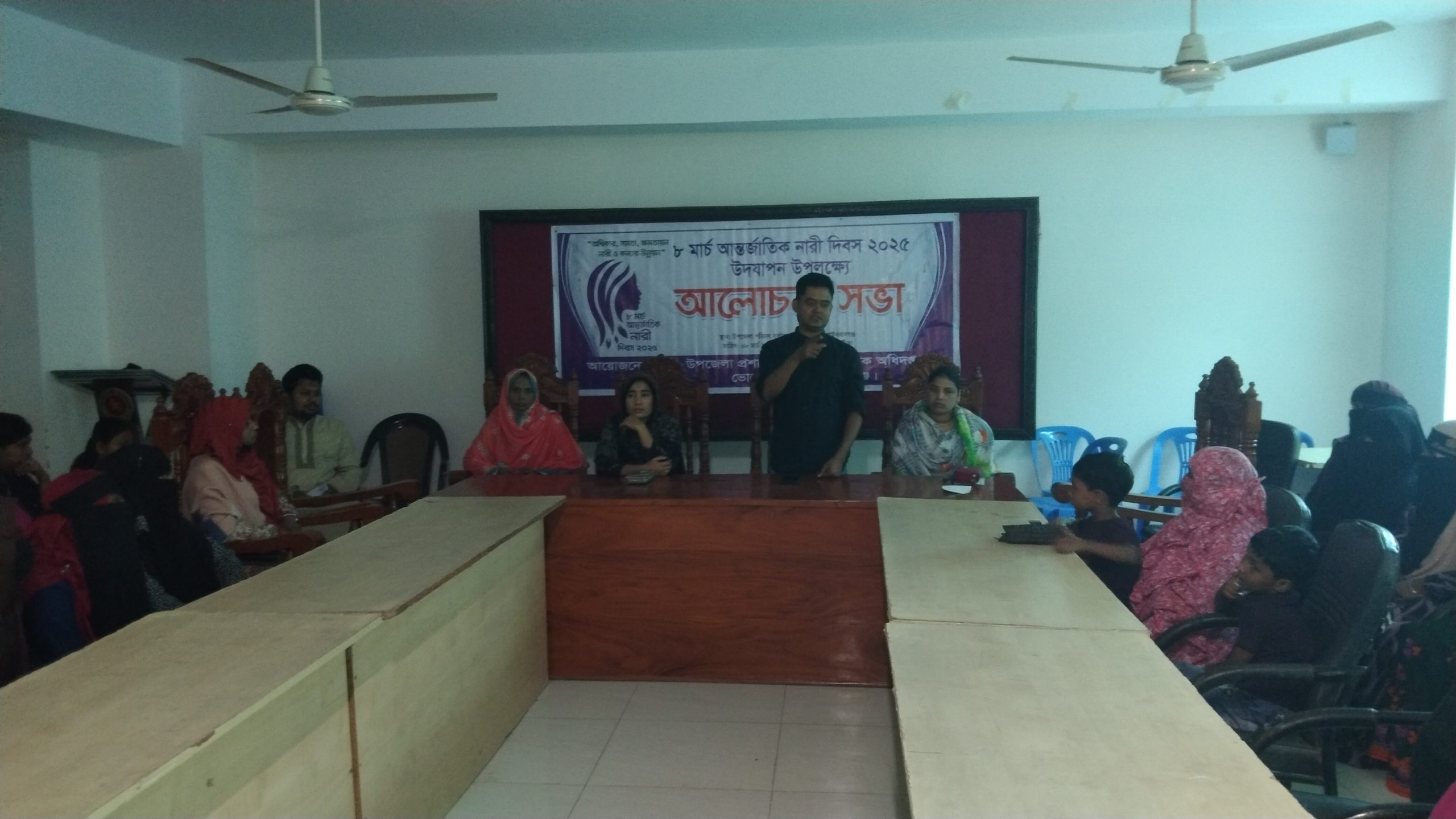 "অধিকার, সমতা, ক্ষমতায়ন, নারী ও কন্যার উন্নয়ন" এ স্লোগানকে কেন্দ্র করে গ্রাম আদালতের সমন্বয়ক সন্ধ্যা রানীর সঞ্চালনায় আলোচনা সভায় উপজেলা সমাজ সেবা অফিসার মোঃ নাসিম উদ্দিনের সভাপতিত্বে উপস্থিত থেকে বক্তব্য রাখেন, উপজেলা আনসার ও ভিডিপি অফিসার (ভারপ্রাপ্ত) শামিউল বাসির, তথ্য উদ্দ্যোক্তা নারী নাসরিন আরা বেগম, উপজেলা মহিলা বিষয়ক সহকারী কর্মকর্তা আন্জুমান আরা, মদিনা বেগমসহ উপজেলার বিভিন্ন শ্রেণীর নারীগণ উপস্থিত ছিলেন। #