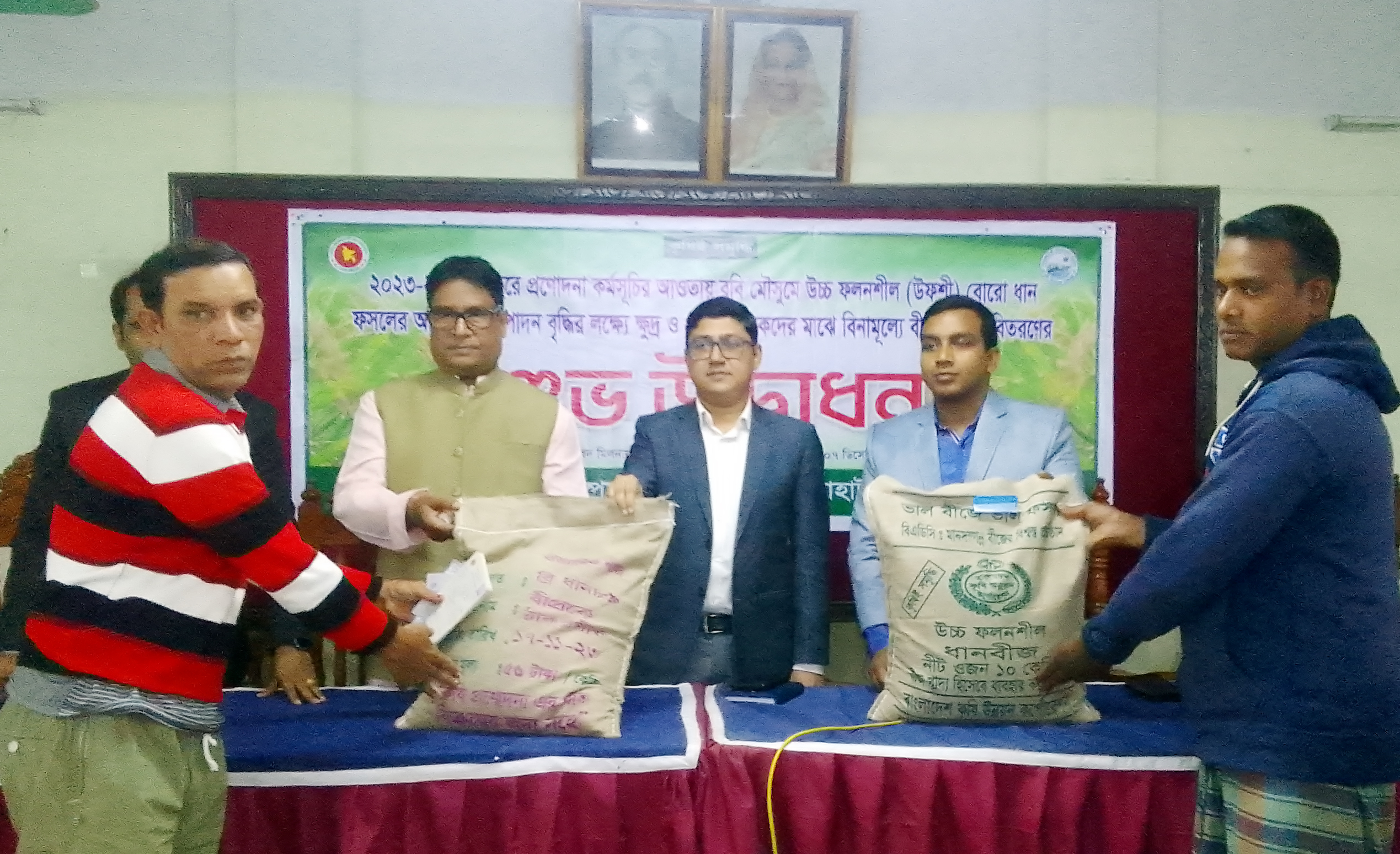 ভোলাহাটে ক্ষুদ্র ও প্রান্তিক কৃষকদের মাঝে বিনামুল্যে সার-বীজ বিতরণ উদ্বোধন