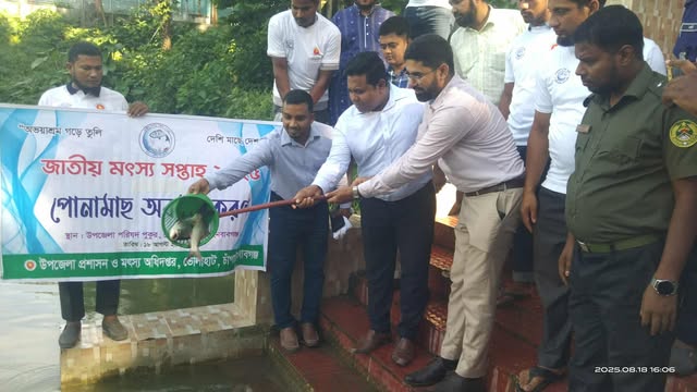 # এম.এস.আই শরীফ, ভোলাহাট (চাঁপাইনবাবগঞ্জ) প্রতিনিধিঃ চাঁপাইনবাবগঞ্জের ভোলাহাটে উপজেলায় সপ্তাহ ব্যাপী জাতীয় মৎস্য সপ্তাহ ২০২৫ উদযাপন উপলক্ষে বর্ণাঢ্য রেলী, আলোচনা সভা ও মাছের পোনা অবমুক্তকরণের শুভ উদ্বোধন করা হয়েছে। সোমবার (১৮ আগষ্ট ২০২৫) বিকেল ৩টায় একটি শোভাযাত্রা উপজেলা চত্বর থেকে শুরু করে প্রধান সড়ক প্রদক্ষিণ করে উপজেলা পরিষদ চত্বরে শেষ হয়ে আলোচনা সভায় মিলিত হয়।