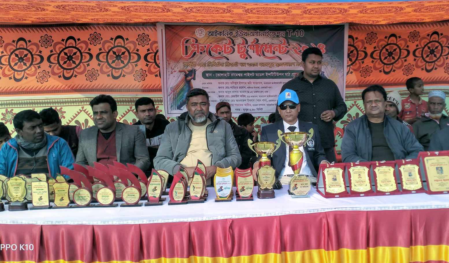 # ভোলাহাট(চাঁপাইনবাবগঞ্জ)প্রতিনিধিঃ চাঁপাইনবাবগঞ্জের ভোলাহাটে আইকনিক অর্গানাইজেশন টি-টেন ক্রিকেট টুর্নামেন্ট ২০২৪ চূড়ান্ত পর্যায়ের খেলায় সেঞ্চুরি এগ্রো লিমিটেড ক্রিকেট দল বনাম ধরমপুর ছাত্র কল্যাণ সংস্থা'র মধ্যে ফাইনাল খেলাটি বৃহস্পতিবার (৩০ জানুয়ারী'২৫) বিকেল আড়াইটার সময় রামেশ্বর পাইলট মডেল ইন্সটিটিউশন মাঠ প্রাঙ্গনে অনুষ্ঠিত হয়।