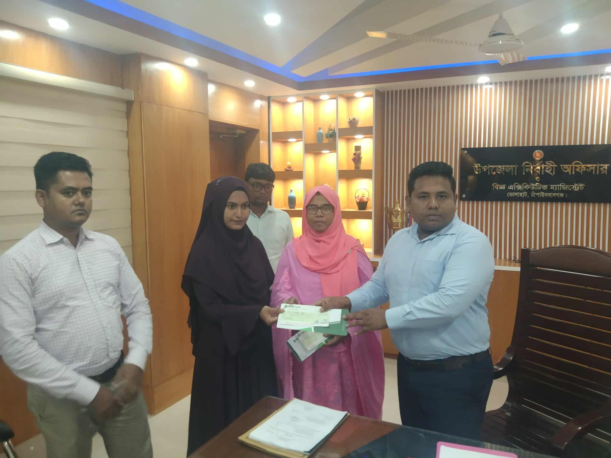 এ আর্থিক সহায়তা প্রদানের চেক বিতরণে উপজেলা নির্বাহী অফিসার মোঃ মনিরুজ্জামান এর কার্যালয়ে তিনি এ আর্থিক সহায়তার চেক বিতরণ করেন। এ সময় উপস্থিত ছিলেন, উপজেলা সমাজসেবা অফিসার মোঃ নাসিম উদ্দিন, ভোলাহাট এরিয়া সহকারী পরিচালক মোঃ আরিফুজ্জামান, শাখা ব্যবস্থাপক মোসাঃ লাকী খাতুন, ভার্ক ভোলাহাট শাখার হিসাবরক্ষক সুজন কুমার, ভার্ক উপজেলা সমন্বয়কারী মোসাঃ হাজেরা খাতুন।#