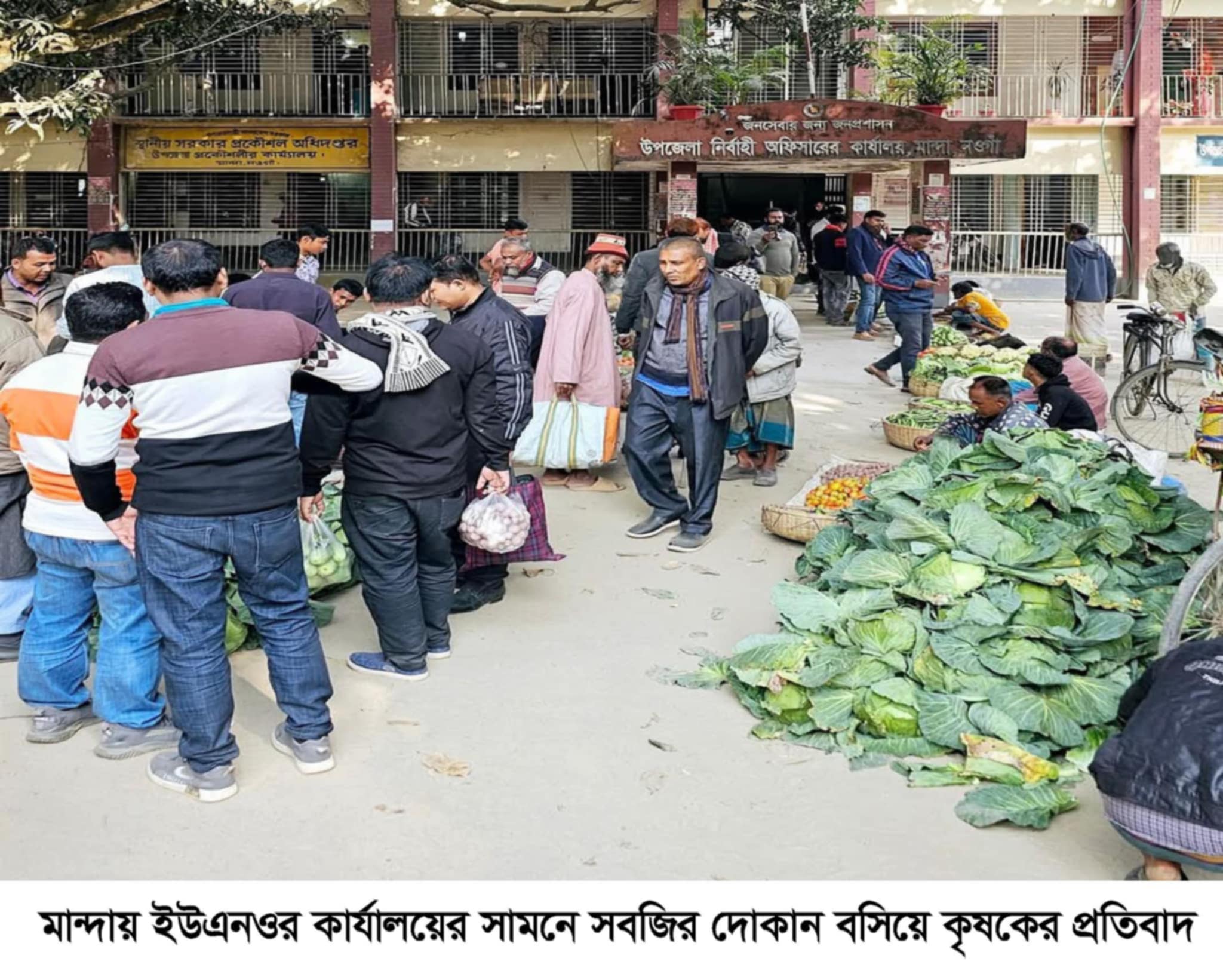 মান্দায় ইউএনওর অফিসের সামনে দোকান বসিয়ে কৃষকের প্রতিবাদ