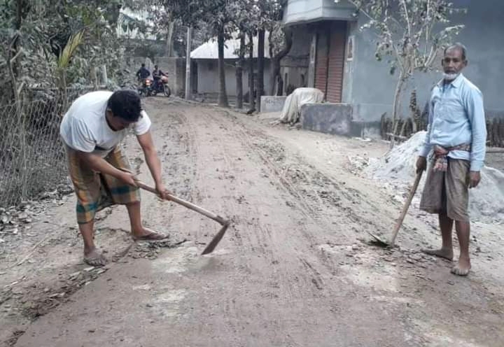 মান্দায় পুকুরের মাটি পরিবহণে ট্রাক্টর, গ্রামীণ রাস্তার বেহাল দশা