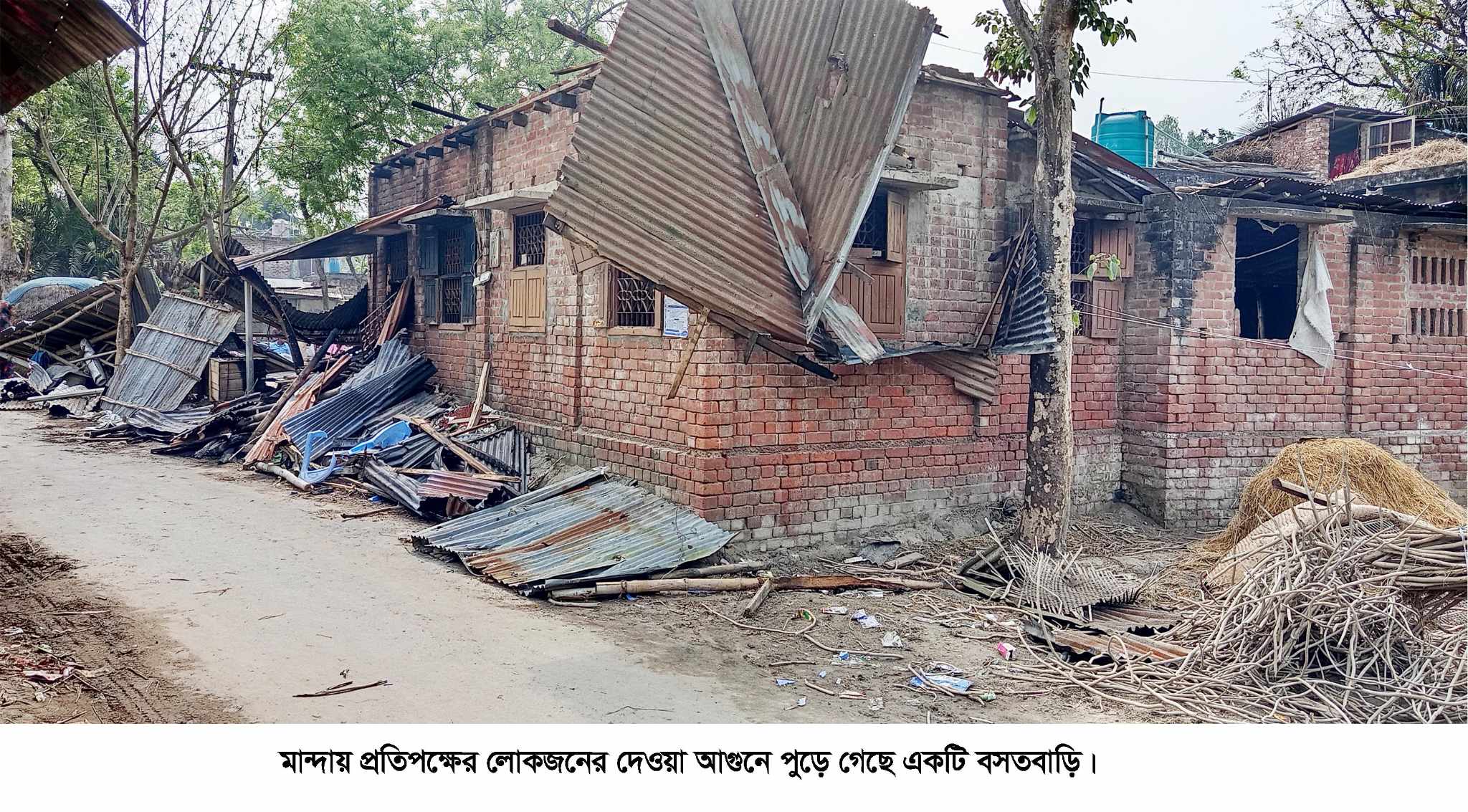 মান্দায় লুটপাটের পর পুড়িয়ে দেওয়া হলো বসতবাড়ি, গ্রেপ্তার ৯