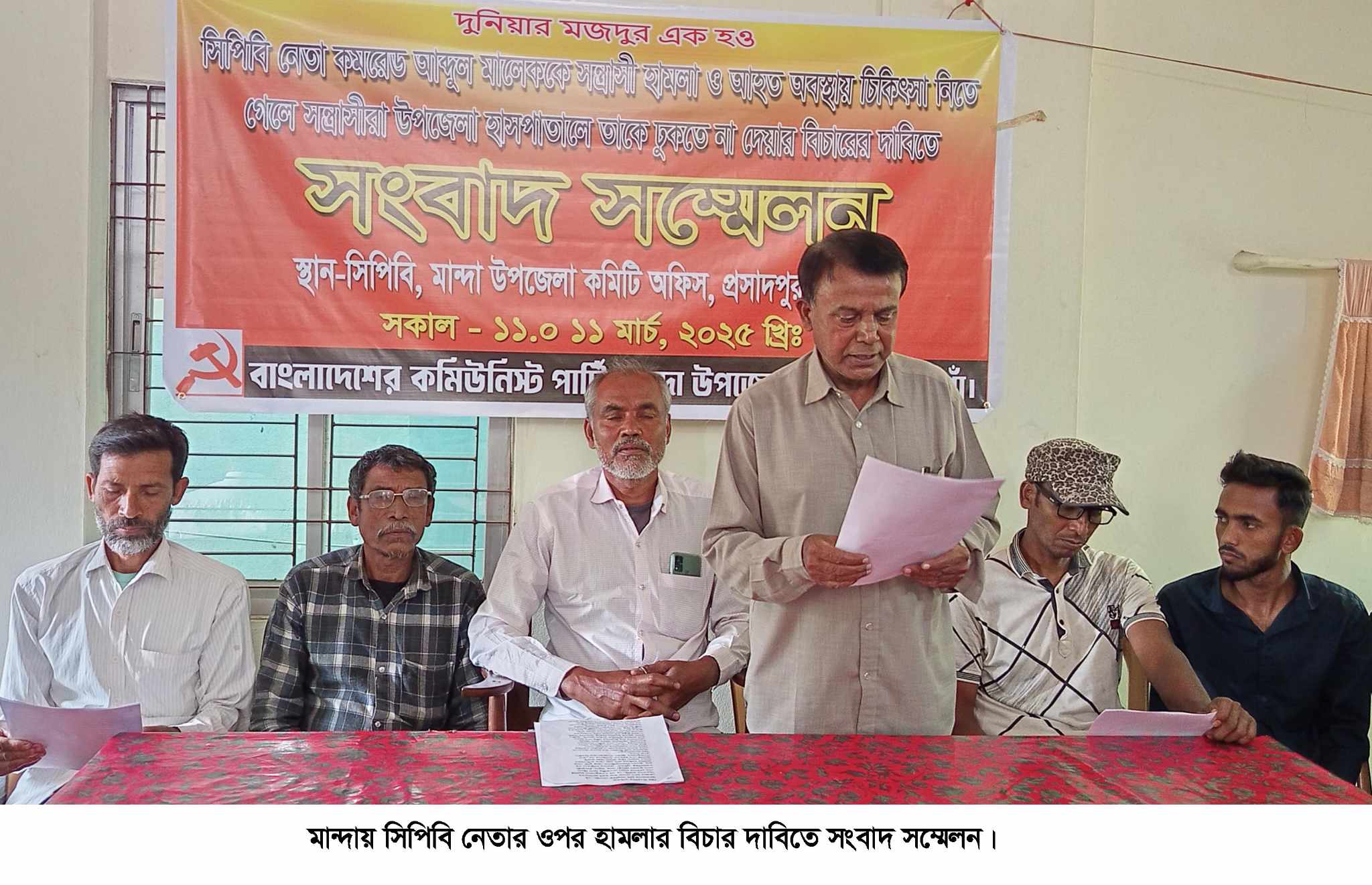 # মান্দা (নওগাঁ) প্রতিনিধি :নওগাঁর মান্দায় সিপিবি নেতা কমরেড আব্দুল মালেকের ওপর হামলার বিচার দাবিতে সংবাদ সম্মেলন করা হয়েছে। আজ (১১ মার্চ ) মঙ্গলবার দুপুরে সিপিবি মান্দা উপজেলা শাখা কার্যালয়ে এ সংবাদ সম্মেলনের আয়োজন করা হয়।