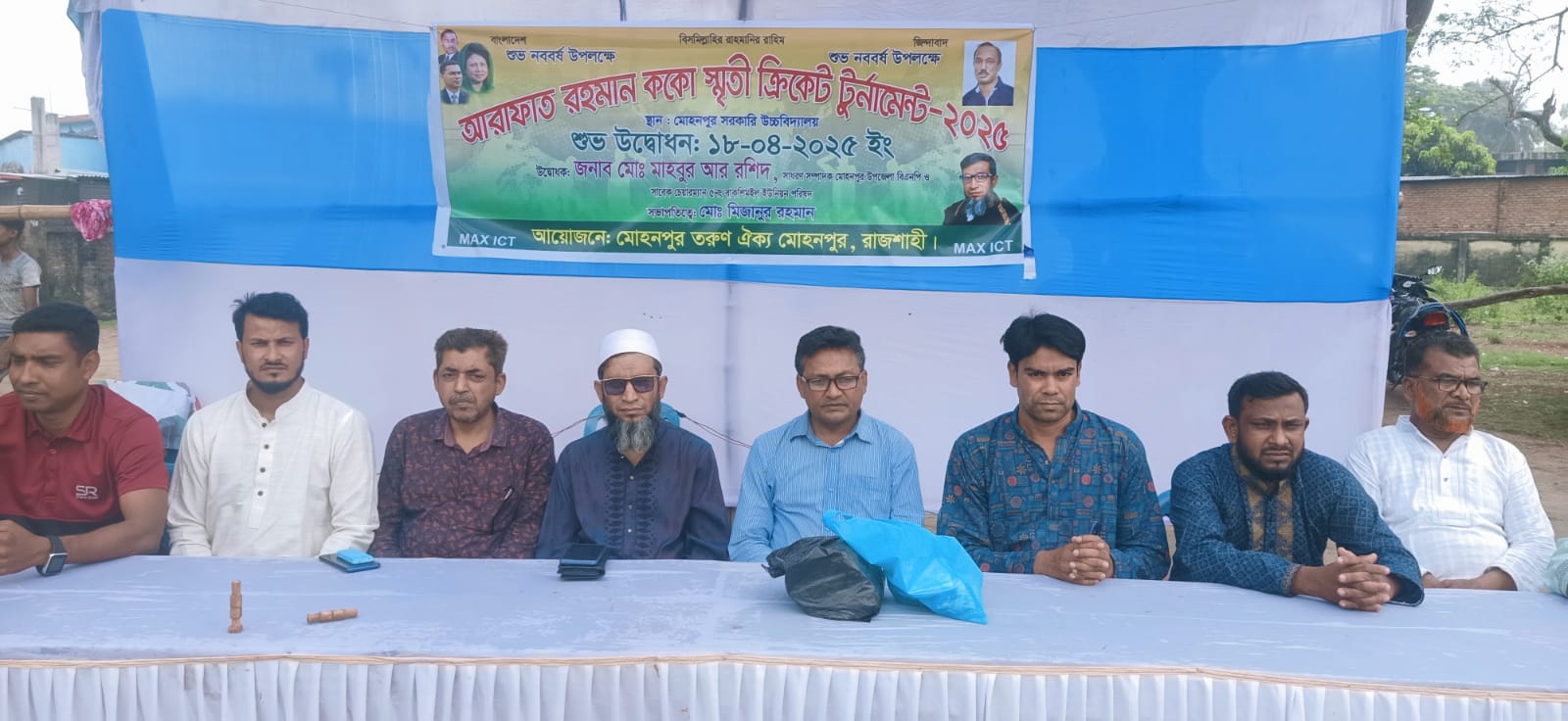 শুক্রবার ১৮ ই এপ্রিল সকাল ১১.০০ টার সময় মোহনপুর সরকারী উচ্চ বিদ্যালয় মাঠে এই ক্রিকেট টুর্নামেন্ট উদ্বোধন করা হয়।উক্ত ক্রিকেট টুর্নামেন্টে সভাপতিত্ব করেন মিজানুর রহমান। প্রধান অতিথি ও উদ্বোধন করেন উপজেলা বিএনপির সাধারণ সম্পাদক মাহবুব আর রশিদ।