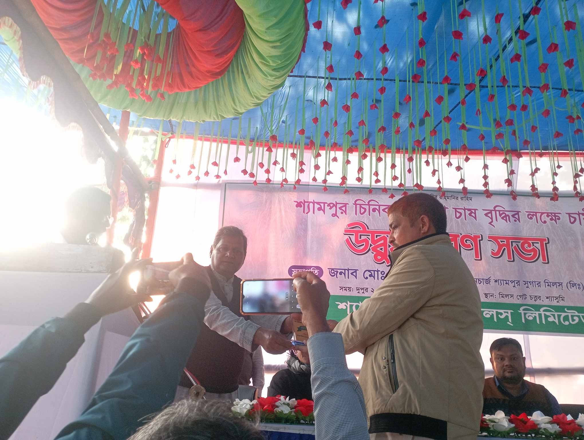 সভায় সভাপতি করেন মোঃ মাসুদ সাদিক ইনচার্জ শ্যামপুর সুগার মিলস লিমিটেড রংপুর মো: আলতাফ হোসেন সাবেক চেয়ারম্যান সদস্য, বন্ধ চালুকরণ ট্রান্সপোর্ট কমিটি সাধারণ সম্পাদক, বাংলাদেশ কৃষক কমিটি রংপুর জেলা কমিটি রংপুর। দুপুরে শ্যামপুর বদরগঞ্জ মিলস গেট চত্বর শাসুমি, আয়োজনে শ্যামপুর সুগার মিলস লিমিটেড।