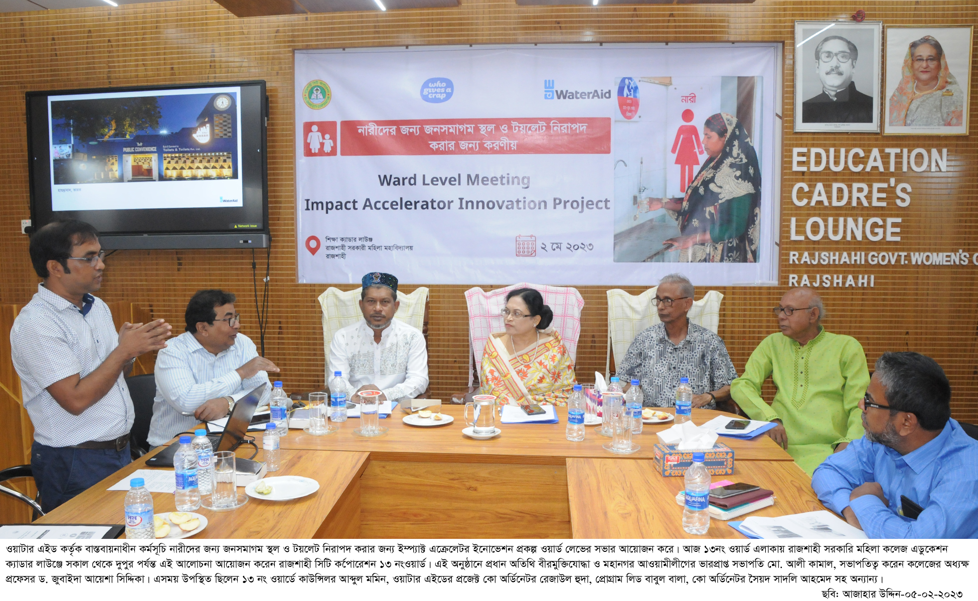 রাজশাহীতে নারীদের জন্য জনসমাগম স্থল ও প্রতিষ্ঠান পর্যায়ে টয়লেট নিরাপদ করণে করণীয় বিষয়ে ওয়াটার এইড প্রকল্প অবহিতকরণ সভা অনুষ্ঠিত হয়েছে। মঙ্গলবার সকালে রাজশাহী সরকারী মহিলা কলেজ সভাকক্ষে আয়োজিত ইমপ্যাক্ট এ্যাকসেলেটর ইনোভেশন প্রকল্পের ওয়ার্ড পর্যায়ে প্রকল্প অবহিতকরণ এ সভা অনুষ্ঠিত হয়।