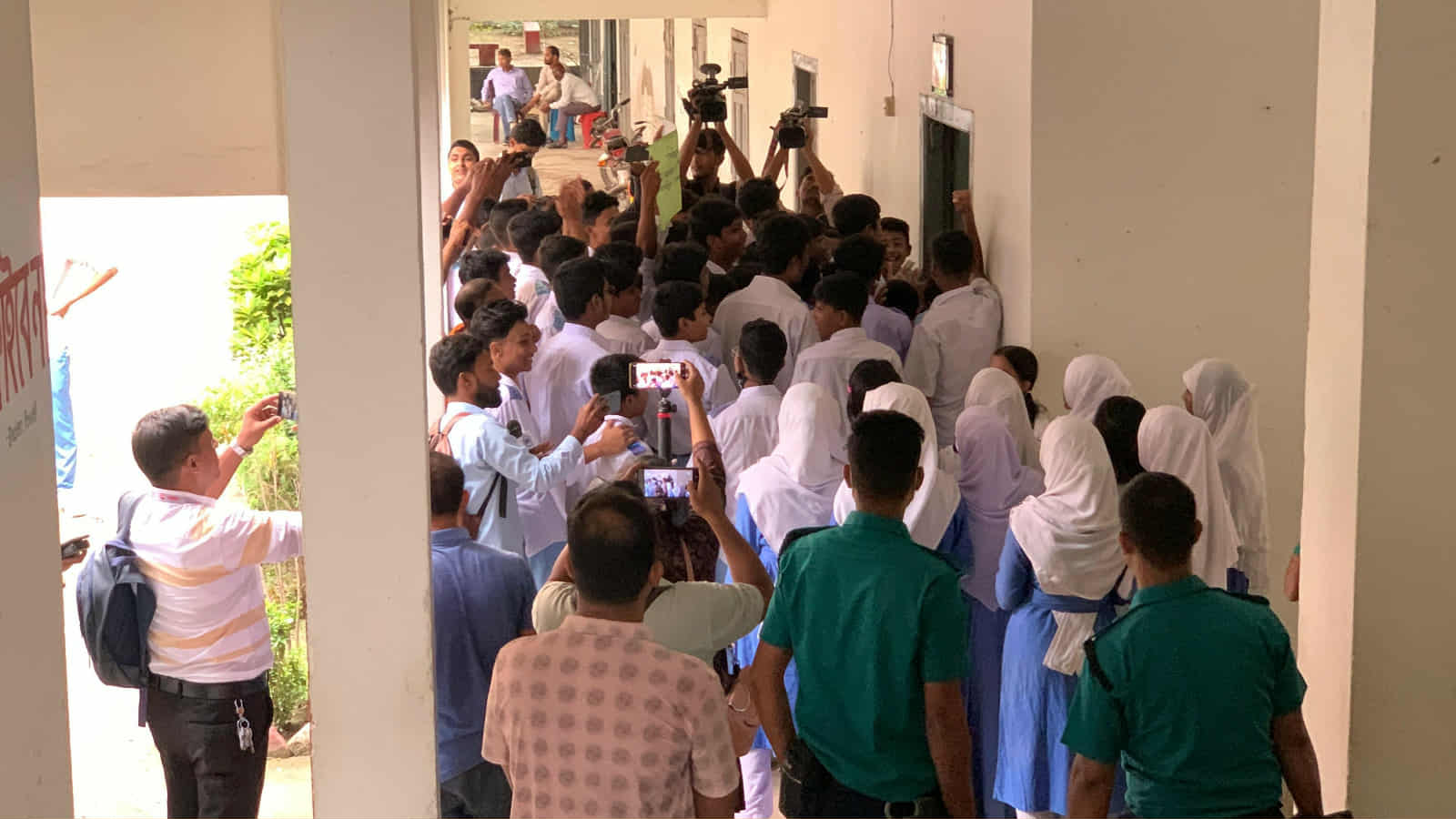 ক্লাস বর্জনের বিষয়ে তরিকুল ইসলাম বলেন, শিক্ষার্থীরা ক্লাস করতে নারাজ। এরপর সাংবাদিকার মব সৃষ্টির বিষয়ে কথা বলতে গেলেই তার পাশে থাকার তার দোসররা সাংবাদিকদের উপরে চড়াও হলে এক পর্যায়ে সাংবাদিকদের সাথে তাদের বাকবিতন্ডা হয় এবং সাংবাদিকরা তাৎক্ষণিক সংবাদ সম্মেলন বর্জন করে চলে যায়। তবে সংবাদ সম্মেলন চলাকালীন সময়ে শিক্ষার্থীদের প্রধান শিক্ষককে তার কার্যালয় চারিদিক থেকে ঘিরে ধরে। সেইসাথে প্রধান শিক্ষকের সামনেই শিক্ষার্থীরা নানা ধরনের আপত্তিকর স্লোগান দিতে থাকে।