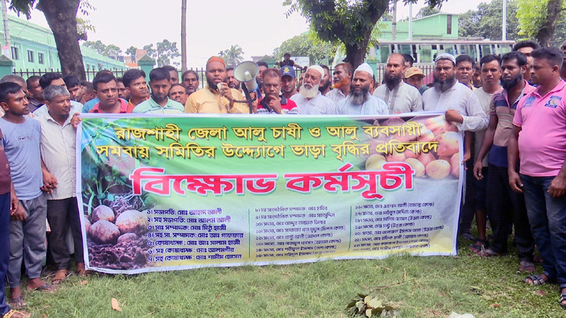 রাজশাহীর হিমাগার গুলোতে আলু সংরক্ষণের ভাড়া বৃদ্ধির প্রতিবাদে বিক্ষোভ মিছিল করেছেন কৃষকেরা।আজ রোববার দুপুরে পবা উপজেলার বায়া এলাকায় এই কর্মসূচি শুরু করেন তারা। তাদের অভিযোগ, বাড়তি ভাড়া দিতে না চাইলে কোল্ড স্টোরেজ থেকে এখন আলু বের করতে দেওয়া হচ্ছে না। সময়মত আলু বিক্রি করতে না পারলে তারা লোকসান গুণবেন।