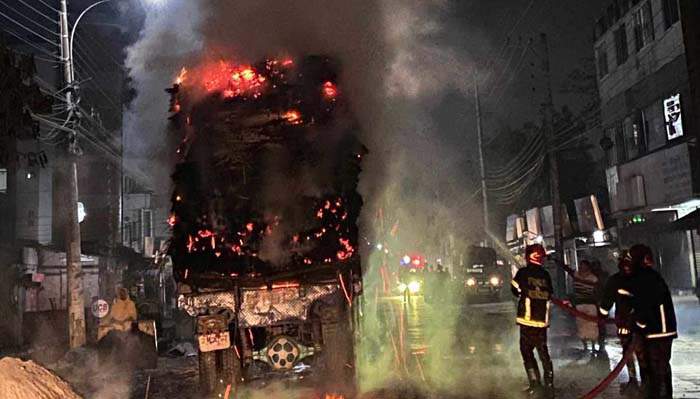 রাজশাহীর কাজলাগেটে পাটখড়ির ট্রাকে আগুন দিল দুর্বৃত্তরা