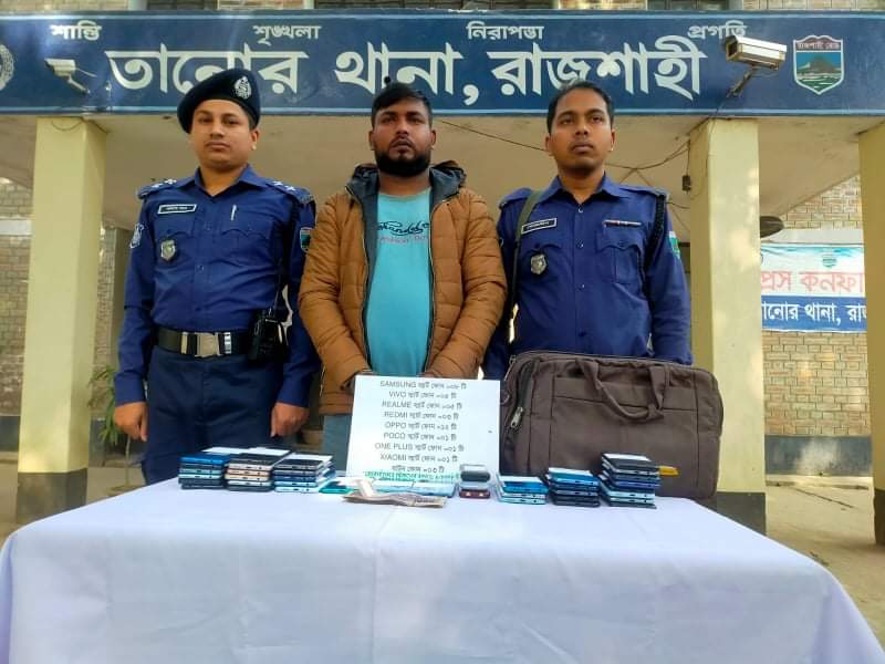 রাজশাহীর তানোরে ৩৯ টি চৌরাই মোবাইল ও নগদ টাকাসহ গ্রেপ্তার ১