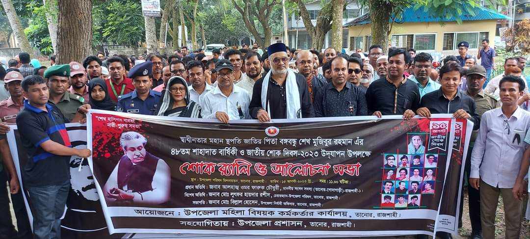 তানোর উপজেলা প্রশাসন উদ্যােগে বঙ্গবন্ধু শেখ মুজিবুর রহমানের ৪৮ তম শাহাদত বার্ষিকী ও ১৫ আগষ্ট জাতীয় শোক দিবস পালন করা হয়েছে পালন করা হয়েছে। দিবসটি উপলক্ষ্যে মঙ্গলবার (১৫ই আগষ্ট) তানোর তানোর উপজেলা অডিটরিয়ামে বেলা ১০ টায় বঙ্গবন্ধু শেখ মুজিবুর রহমানের মুর্যালে মাল্য অর্পন, র্যালি, আলোচনা সভা ও দোয়া মাহফিল অনুষ্ঠিত হয়।