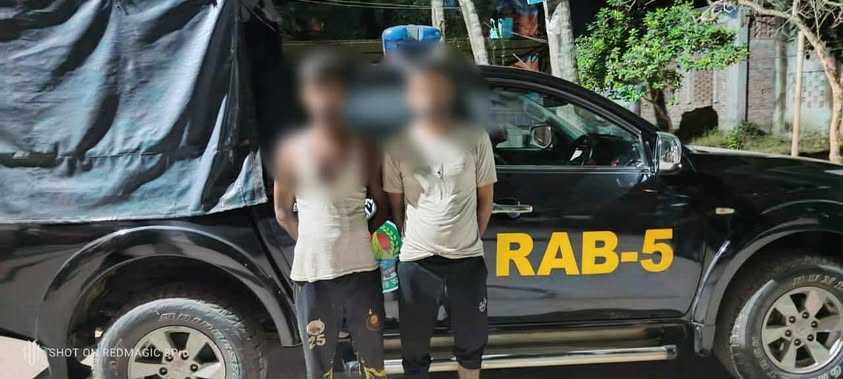 র্যাব জানায়, গোপন সংবাদের ভিত্তিতে র্যাব-৫, সিপিএসসি রাজশাহীর একটি আভিযানিক দল জানতে পারে—কতিপয় মাদক ব্যবসায়ী নাটোর থেকে একটি ট্রাকে গাঁজা বহন করে পুঠিয়া এলাকায় অবস্থান করছে। পরে গোয়েন্দা তৎপরতায় বিষয়টি নিশ্চিত হয়ে রাতে অভিযান চালিয়ে ড্রাইভার মোঃ কাশেম আলী (৩২) ও হেলপার মোঃ জয় হোসেন (৩০) কে হাতেনাতে গ্রেফতার করা হয়। অভিযান চলাকালে তাদের ট্রাকের চালকের সিটের পিছনে কেবিনের ভেতর অভিনব কায়দায় লুকানো ১৬ কেজি ১০০ গ্রাম গাঁজা, ট্রাক, গাড়ির কাগজপত্র এবং দুইটি মোবাইল ফোন জব্দ করা হয়।