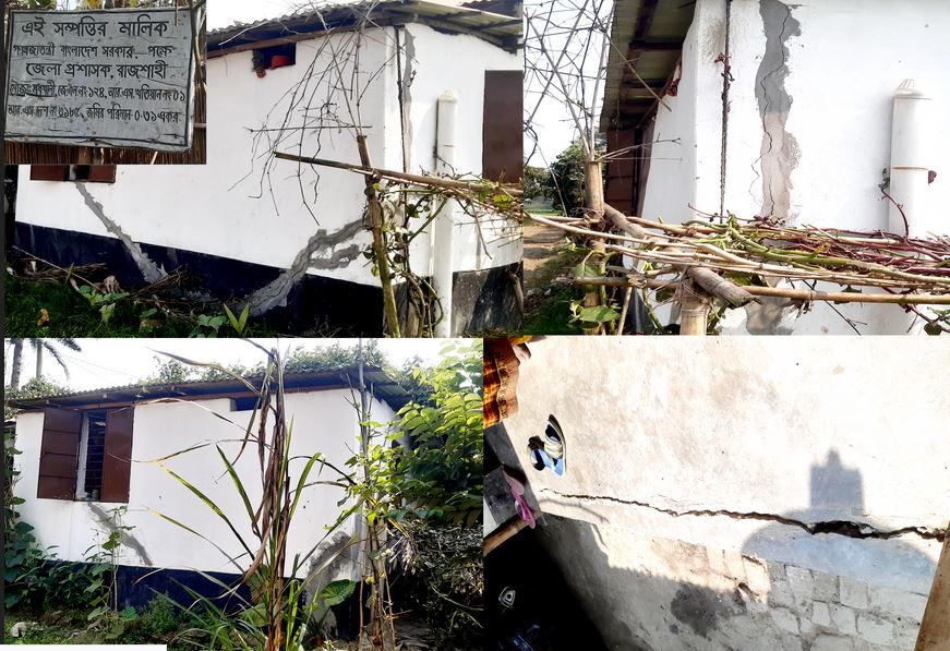 বর্তমানে ডাঙ্গাপাড়া আশ্রয়ণ প্রকল্পের শিল্পী বেগম, আছিয়া বেগম এবং রশেনা বেগম এদের তিন জনের ঘরের পিছন সাইডে দেওয়াল ফেটে গেছে। সেই দেওয়াল গুলোতে ইতিপূর্বে সিমেন্ট বালির মসলা দিয়ে নামমাত্র প্লষ্টার করে দেয়। কিন্তু সেই সব ঘরের দেওয়ালে আবার ফাটল দেখা দিয়েছে। শুধু তাই নয় ঘরের মেঝের চারো দিকে এবং বারান্দায় চারো দিকে ফাটল এবং ফেটে বসে গেছে। এছাড়া অনেক ঘরে বর্ষার সময় পানি পড়ে। ঘরগুলোর যে কোন সময় বড় ধরণের ক্ষতি সাধন হতে পারে বলে জানায় তারা।