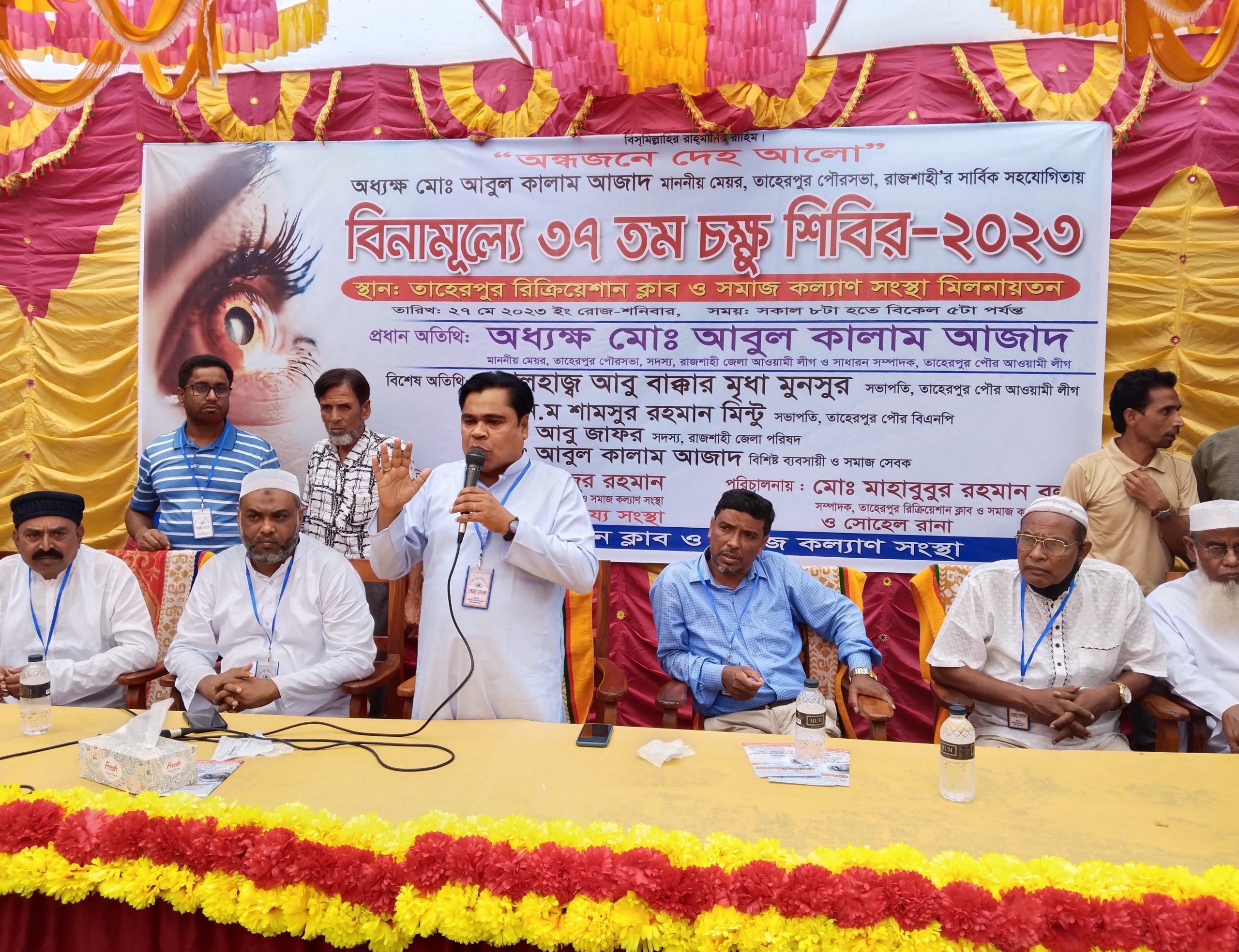 'অন্ধজনে দেহ আলো" স্লোগানকে সামনে রেখে রাজশাহীর বাগমারা উপজেলার তাহেরপুর রিক্রিয়েশন ক্লাবের উদ্যোগে তাহেরপুরের পৌর মেয়র আবুল কালাম আজাদের সার্বিক সহযোগিতায় বিনামূল্যে ৩৭ তম চক্ষু শিবির-২০২৩ অনুষ্ঠিত হয়েছে।