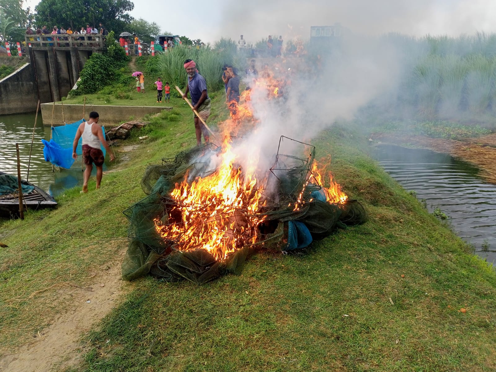 রাজশাহীর বাগমারায় অবৈধ জাল পুড়িয়ে ফেলল প্রশাসন