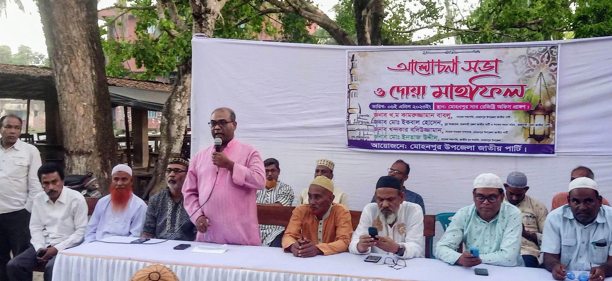 রাজশাহী মোহনপুর উপজেলায় প্রয়াত নেতাদের স্মরণে জাতীয় পাটির আলোচনা সভা ও দোয়া মাহফিল অনুষ্ঠিত হয়।