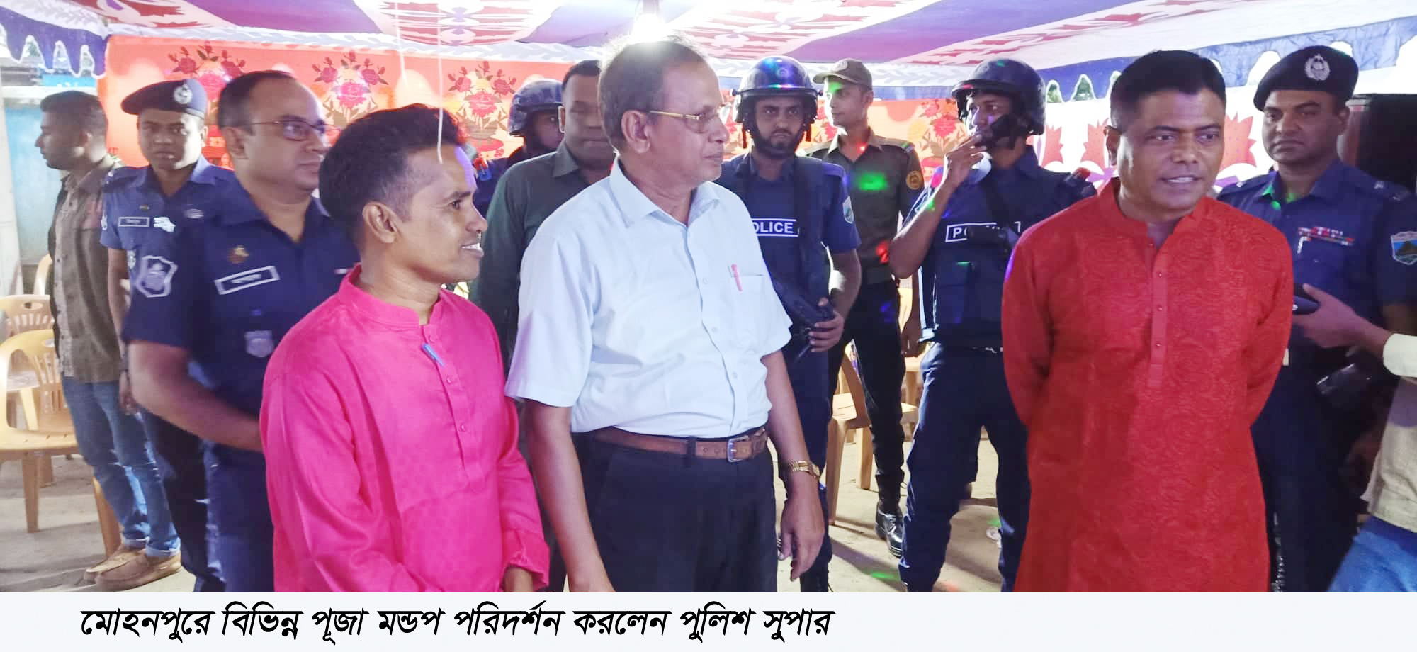রাজশাহীর মোহনপুরে বিভিন্ন পূজা মন্ডপ পরিদর্শন করলেন পুলিশ সুপার