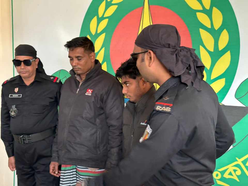 আজ ১৪ ডিসেম্বর-২৩ সকাল আনুমানিক ৯ টায় চাঁপাইনবাবগঞ্জ জেলার চর বাগডাঙ্গা ইউনিয়নে র্যাব-৫, রাজশাহীর সিপিসি-১ কোম্পানী অপারেশন পরিচালনা করে হেরোইন-১০ কেজি, মোবাইল-০২টি, সীমকার্ড-০২টি উদ্ধার করে আসামী মোঃ শরিফুল ইসলাম ওরফে ধুলু মিয়া (৫০), পিতাঃ মৃতঃ নসিমুদ্দিন এবং মোঃ মোমিনুল ইসলাম পিতাঃ মোঃ শরিফুল ইসলাম ওরফে ধুলু মিয়া উভয়ের সাং- জাইরা মোরল, থানা-চাপাইনবাবগঞ্জ সদর, জেলা- চাপাইনবাবগঞ্জ‘কে গ্রেফতার করেন।গ্রেফতারকুতরা বাপ-বেটা।