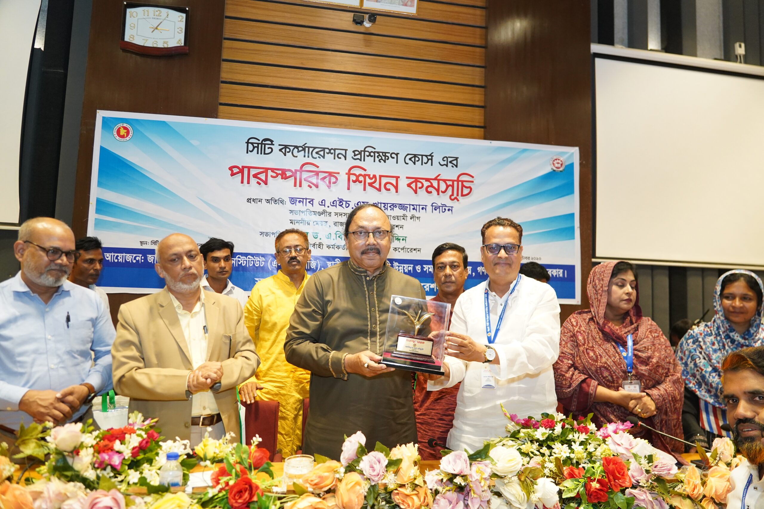 স্থানীয় সরকার, পল্লী উন্নয়ন ও সমবায় মন্ত্রণালয়ের জাতীয় স্থানীয় সরকার ইনস্টিটিউট (এনআইএলজি) আয়োজনে রাজশাহীতে সিলেট সিটি কর্পোরেশনের নবনির্বাচিত কাউন্সিলরবৃন্দের অংশগ্রহণে সিটি কর্পোরেশন প্রশিক্ষণ কোর্স পারস্পরিক শিখন কর্মসূচি অনুষ্ঠিত হয়েছে। রাজশাহী সিটি কর্পোরেশনের সহযোগিতায় বুধবার বেলা সাড়ে ১২টা থেকে দুপুর ৩টা পর্যন্ত নগর ভবনের সিটি হল সভাকক্ষে এই কর্মসূচি অনুষ্ঠিত হয়। কর্মসূচিতে প্রধান অতিথি হিসেবে উপস্থিত ছিলেন বালাদেশ আওয়ামী লীগের সভাপতিমণ্ডলীর সদস্য ও রাজশাহী সিটি কর্পোশেনের মেয়র এএইচএম খায়রুজ্জামান লিটন।