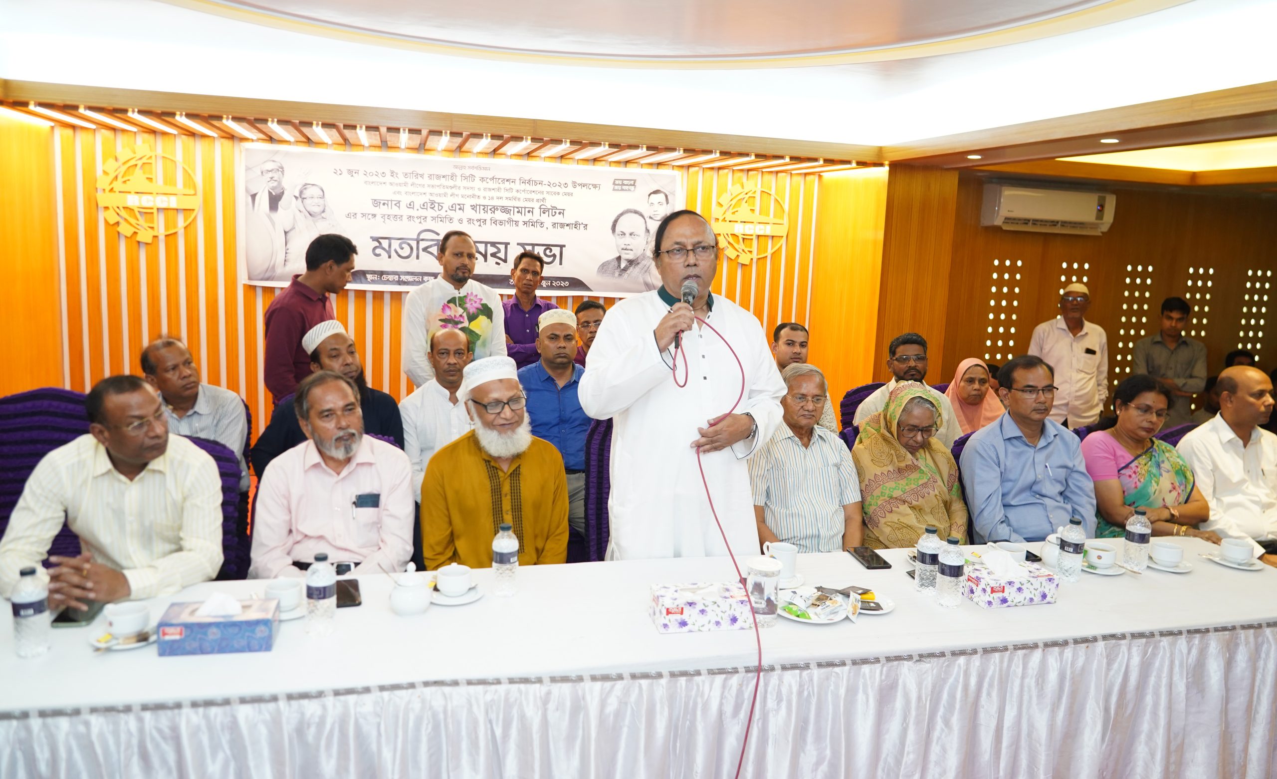 রাজশাহীস্থ বৃহত্তর রংপুর সমিতি ও রংপুর বিভাগীয় সমিতির সাথে মতবিনিময় করেছেন বাংলাদেশ আওয়ামী লীগ মনোনীত ও ১৪ দল সমর্থিত মেয়র প্রার্থী এএইচএম খায়রুজ্জামান লিটন। বৃহস্পতিবার দুপুরে রাজশাহী চেম্বার ভবন সম্মেলন কক্ষে এই মতবিনিময় সভার আয়োজন করা হয়।