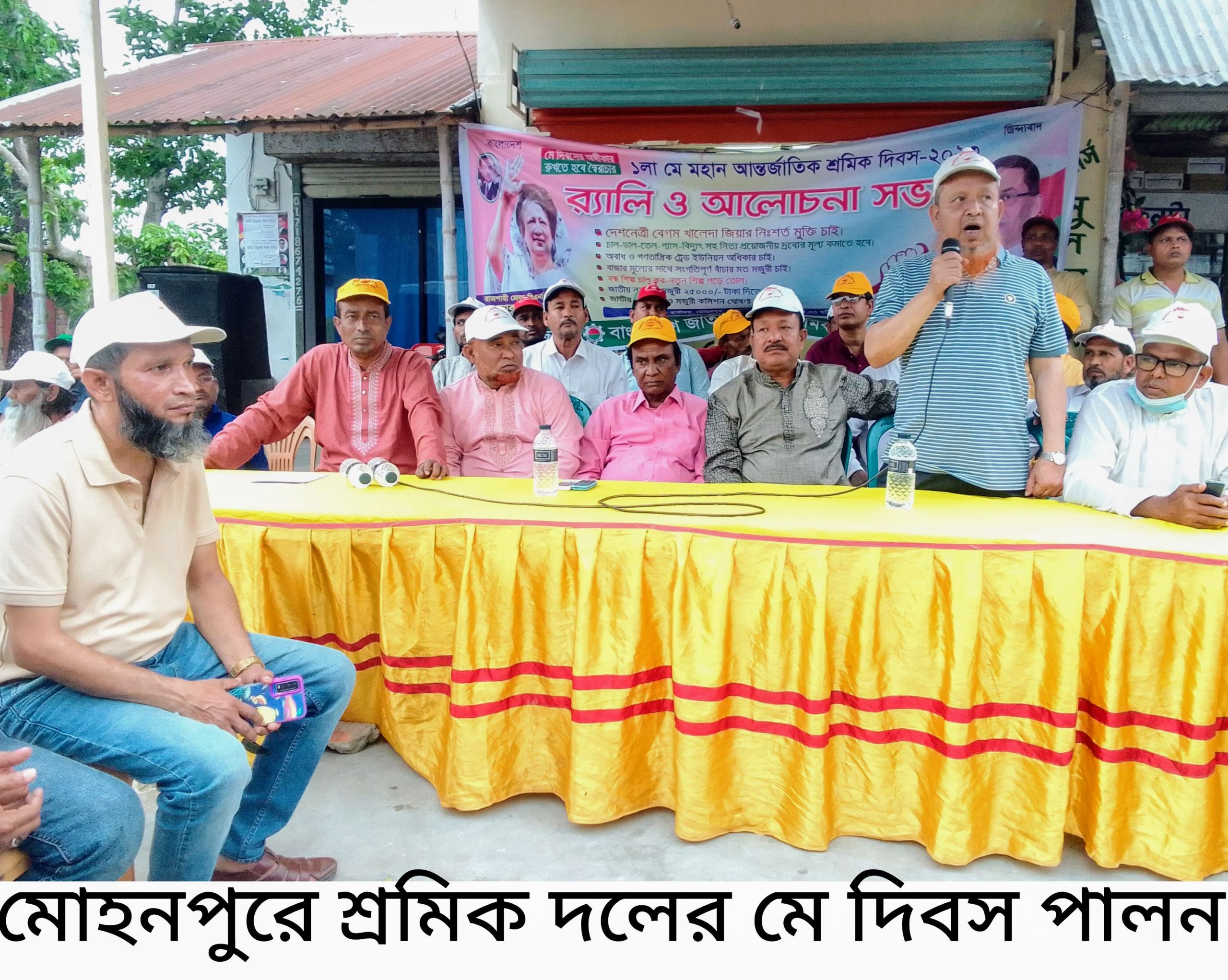 রাজশাহী মোহনপুর উপজেলায় মহান মে দিবস উপলক্ষে আজ ১লা মে সোমবার বিকালে দলীয় কার্যালয়ে শ্রমিক দলের আয়োজনে আলোচনা সভা অনুষ্ঠিত হয়।আলোচনা সভায় সভাপতিত্ব করেন উপজেলা শ্রমিক দলের সভাপতি মোজাম্মেল হক,পরিচালনা করেন বিএনপি নেতা আব্দুল কাদের মোল্লা। প্রধান অতিথি ছিলেন জেলা বিএনপি সাবেক সভাপতি এ্যাড,তোফাজ্জল হোসেন তপু।