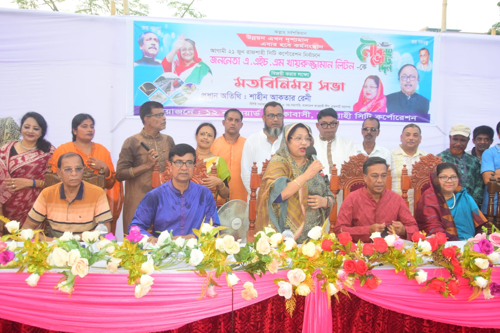 বাংলাদেশ আওয়ামী লীগের সভাপতিমÐলীর সদস্য ও রাজশাহী সিটি কর্পোরেশনের সাবেক মেয়র এবং আসন্ন ২১ জুন রাসিক নির্বাচনে আওয়ামী লীগ মনোনীত ও ১৪ দল সমর্থিত মেয়র প্রার্থী এএইচএম খায়রুজ্জামান লিটনকে বিজয়ী করার লক্ষ্যে ১২নং ওয়ার্ড এর এলাকাবাসীর আয়োজনে মতবিনিময় সভা অনুষ্ঠিত হয়েছে। মঙ্গলবার এই মতবিনিময় সভায় প্রধান অতিথি হিসেবে উপস্থিত ছিলেন রাজশাহী মহানগর আওয়ামী লীগের সহ-সভাপতি ও বিশিষ্ট সমাজসেবী শাহীন আকতার রেণী।