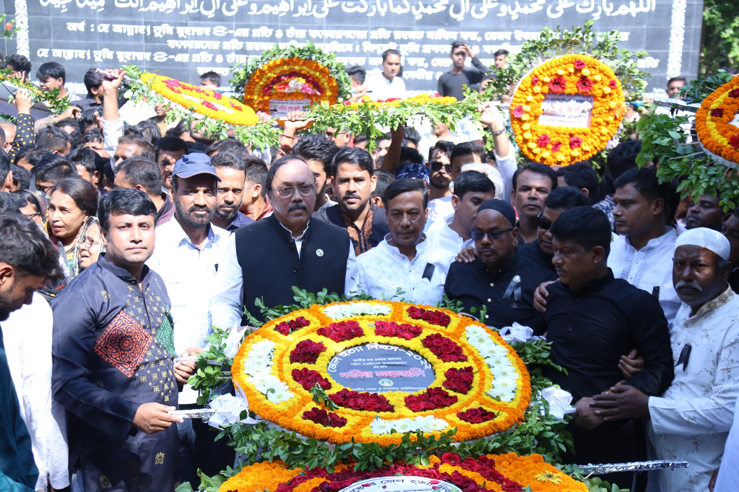 রাজশাহী সিটি কর্পোরেশনের উদ্যোগে যথাযথ মর্যাদায় জেল হত্যা দিবস-২০২২ পালন করা হয়েছে। দিবসটি উপলক্ষ্যে আজ বৃহস্পতিবার সকালে নগর ভবনে নগর ভবন চত্বরে জাতির পিতা বঙ্গবন্ধু শেখ মুজিবুর রহমানের প্রতিকৃতিতে পুস্পস্তবক অর্পণ করেন বাংলাদেশ আওয়ামী লীগের সভাপতিমÐলীর সদস্য ও রাজশাহী সিটি কর্পোরেশনের মাননীয় মেয়র এ.এইচ.এম খায়রুজ্জামান লিটন। এরপর কাদিরগঞ্জে জাতীয় চার নেতার অন্যতম শহীদ এএইচএম কামারুজ্জামানের সমাধিতে পুষ্পস্তবক অর্পণের মাধ্যমে শ্রদ্ধা নিবেদন করেন রাসিক মেয়র, কাউন্সিলর, কর্মকর্তা-কর্মচারীবৃন্দ। শ্রদ্ধাঞ্জলি জ্ঞাপন শেষে দোয়া ও মোনাজাত করা হয়। দোয়া পরিচালনা করেন নগর ভবন মসজিদের পেশ ইমাম হাফেজ মোঃ আবুল খায়ের।