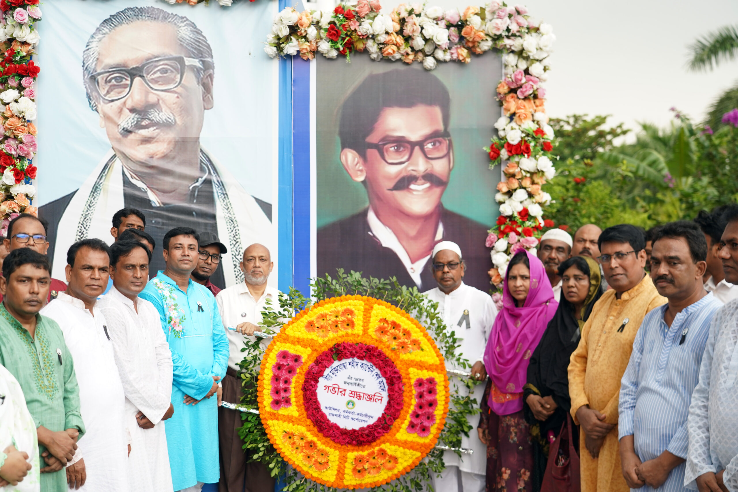 শ্রদ্ধার্ঘ্য অর্পণের পূর্বে সংক্ষিপ্ত আলোচনা সভায় বক্তব্য দেন রাজশাহী সিটি কর্পোরেশনের প্রধান নির্বাহী কর্মকর্তা ড.এবিএম শরীফ উদ্দিন, প্যানেল মেয়র-২ ও ১নং ওয়ার্ড কাউন্সিলর রজব আলী, ১৯নং ওয়ার্ড কাউন্সিলর তৌহিদুল হক সুমন, রাসিক কর্মচারী ইউনিয়নের সাধারণ সম্পাদক আজমির আহমেদ মামুন। অনুষ্ঠান সঞ্চালনা করেন জনসংযোগ কর্মকর্তা মোস্তাফিজ মিশু।