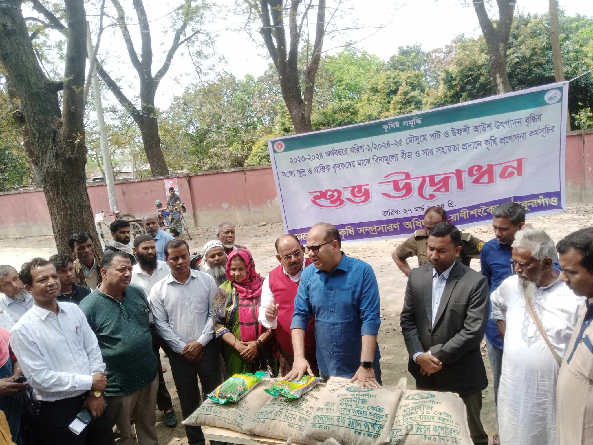 ঠাকুরগাঁওয়ের রাণীশংকৈল উপজেলায় বুধবার ২৭ মার্চ সরকারের কৃষি প্রণোদনা হিসেবে কৃষকদের মাঝে বিনামূল্যে ধান ও পাটের বীজ ও সার বিতরণ কার্যক্রম উদ্বোধন করা হয়।