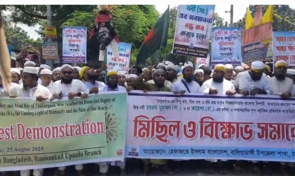 রাণীশংকৈলে মহানবী (সাঃ) কে কটুক্তি করার প্রতিবাদে হেফাজত ইসলামের বিক্ষোভ সমাবেশ
