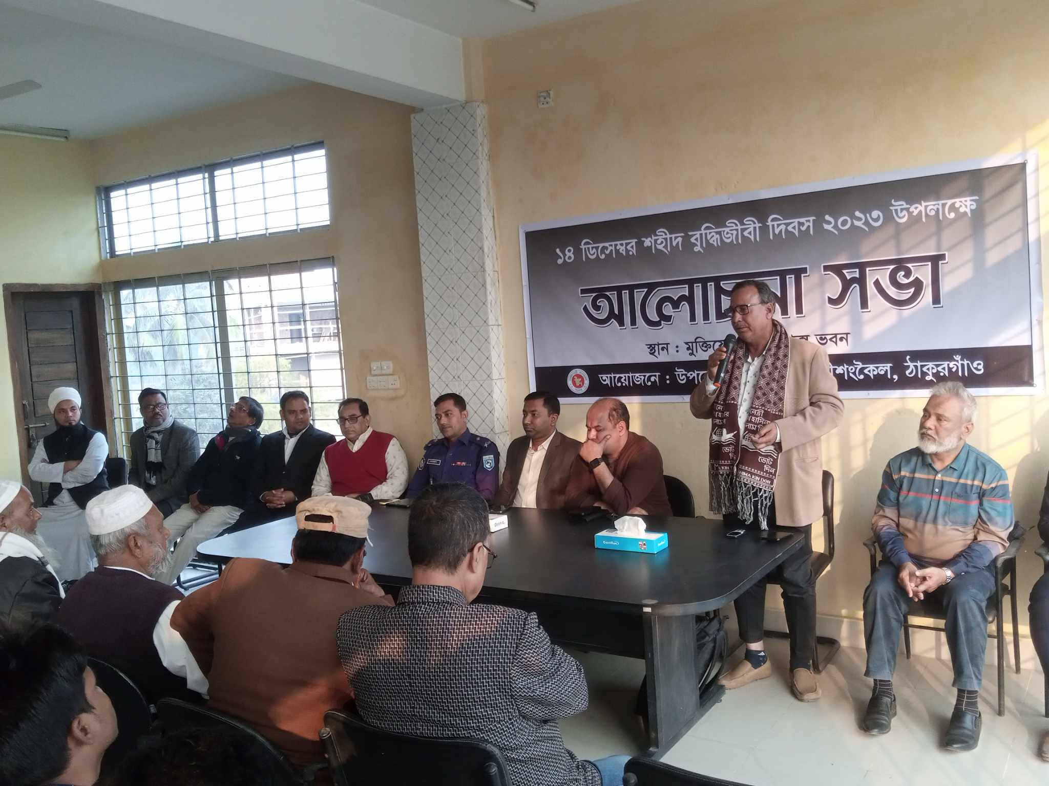 ঠাকুরগাঁওয়ের রানীশংকৈলে বৃহস্পতিবার ১৪ ডিসেম্বর উপজেলা মুক্তিযোদ্ধা সংসদ ভবনে উপজেলা প্রশাসনের আয়োজনে নির্বাহী অফিসার রকিবুল হাসানের সভাপতিত্বে শহীদ বুদ্ধিজীবী দিবস উপলক্ষে আলোচনা সভা অনুষ্ঠিত হয়।