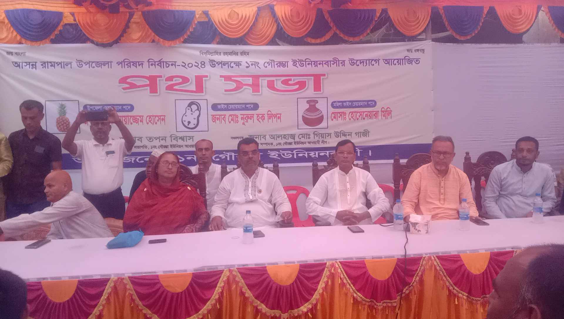 আসন্ন রামপাল উপজেলা পরিষদ নির্বাচন উপলক্ষে উপজেলার গৌরম্ভা ইউনিয়নবাসীর উদ্যোগে নির্বাচনী জনসভা অনুষ্ঠিত হয়েছে। বৃহস্পতিবার (৩ ই মে) বিকেলে ১নং গৌরম্ভা ইউনিয়ন এর কাঁচাবাজার চত্বরে এই নির্বাচনী জনসভা অনুষ্ঠিত হয়। তপন বিশ্বাসের সভাপতিত্বে ও আলহাজ্ব মোহাম্মদ গিয়াস উদ্দিন গাজির সঞ্চালনায় নির্বাচনী পথসভা অনুষ্ঠিত হয়।