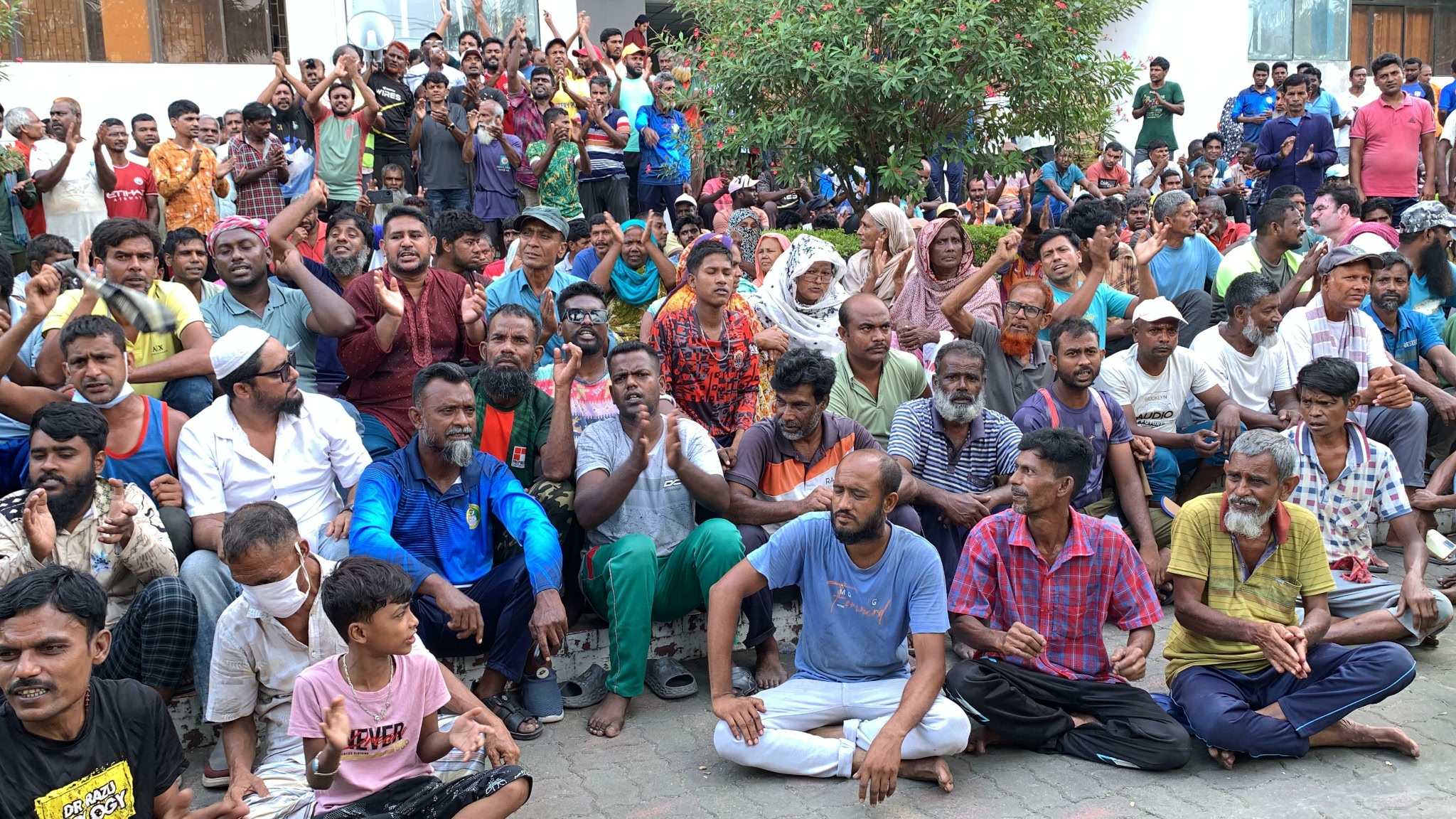 রাসিকের দৈনিক মজুরি শ্রমিকদের বেতন বৃদ্ধির দাবিতে ভবনের সামনে অবস্থান ও  বিক্ষোভ
